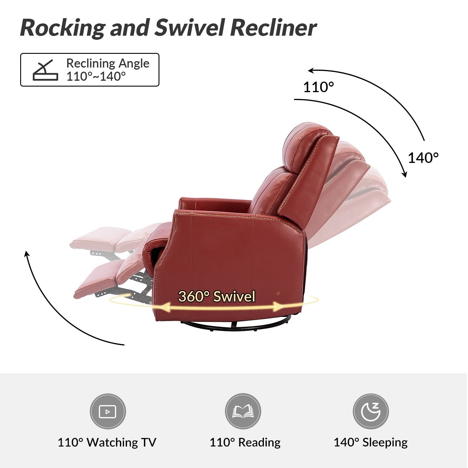 Cet ensemble fauteuil inclinable pivotant répond à tous vos besoins. Fabriqué en métal et bois manufacturé, et recouvert de cuir véritable luxueux, cet ensemble de fauteuils pour chambre d'enfant apporte une touche moderne, simple et élégante à tout salon. De plus, son rembourrage en mousse et en coton polypropylène vous offre un soutien optimal pour vous détendre et vous reposer. Avec un angle d'inclinaison maximal de 145 degrés et des accoudoirs finement rembourrés, vous pouvez l'incliner à votre guise et profiter d'un confort optimal. C'est le choix idéal pour se détendre après une journée de travail.