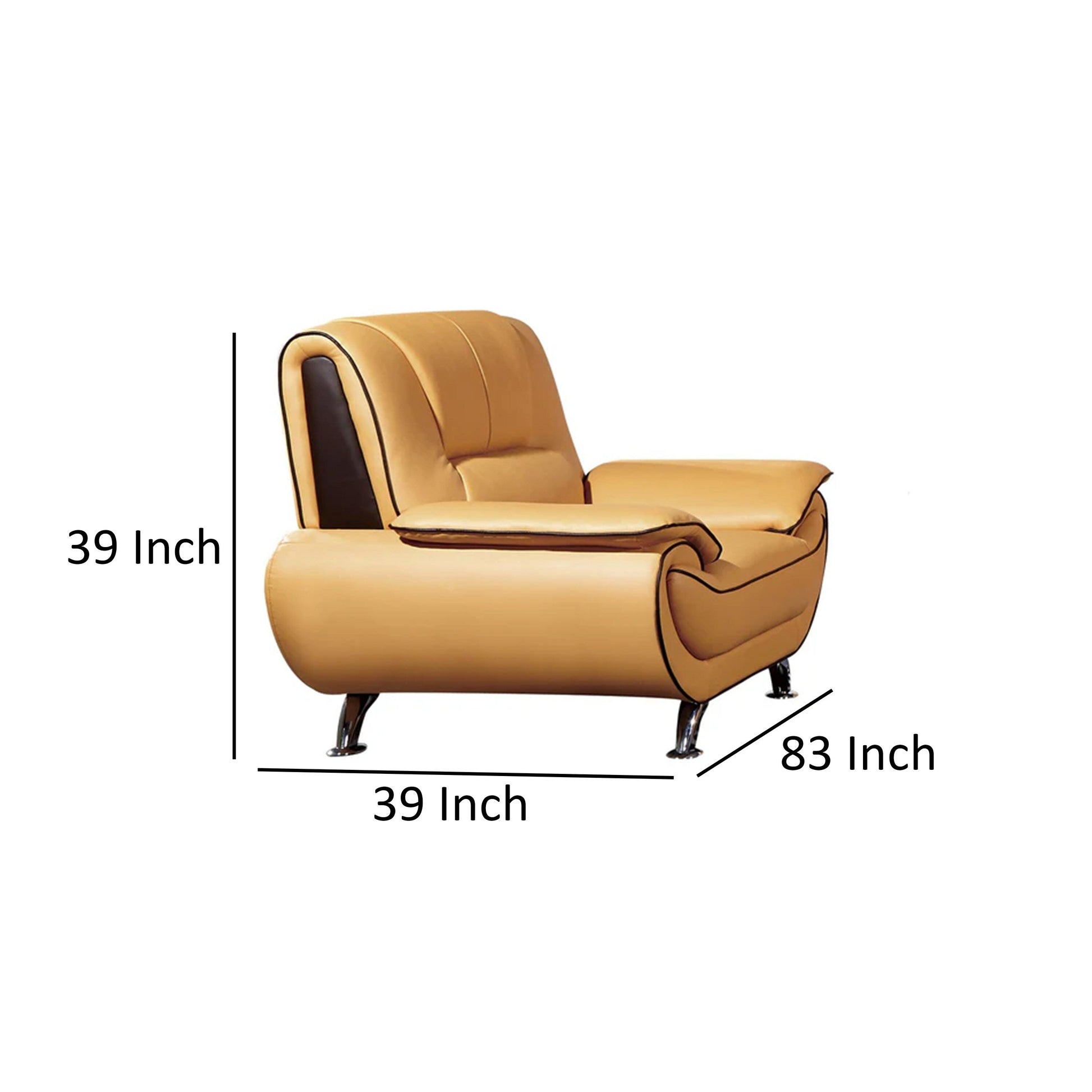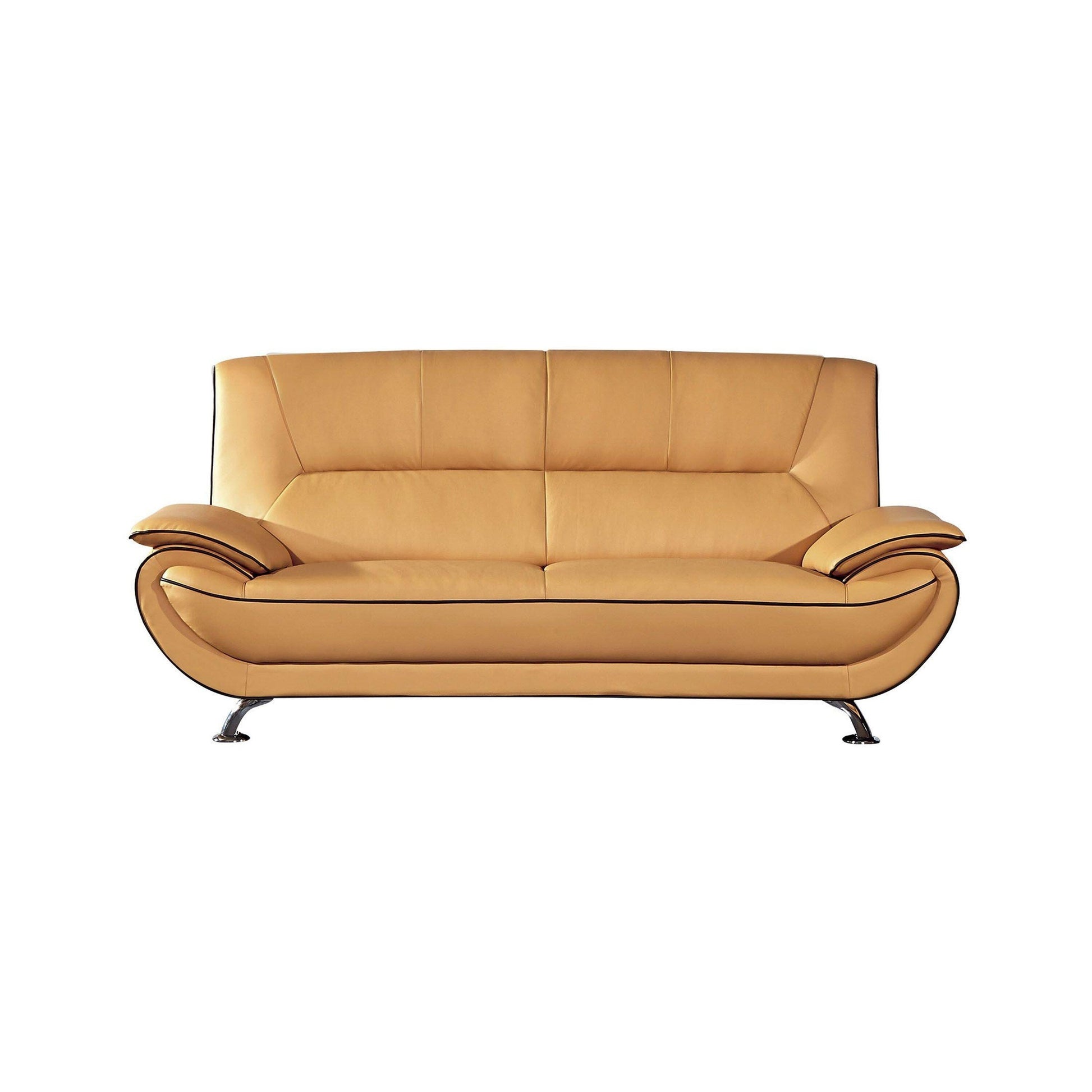 Canapé Diana, cuir véritable noir et jaune, accoudoirs coussinés, chrome, 210 cm