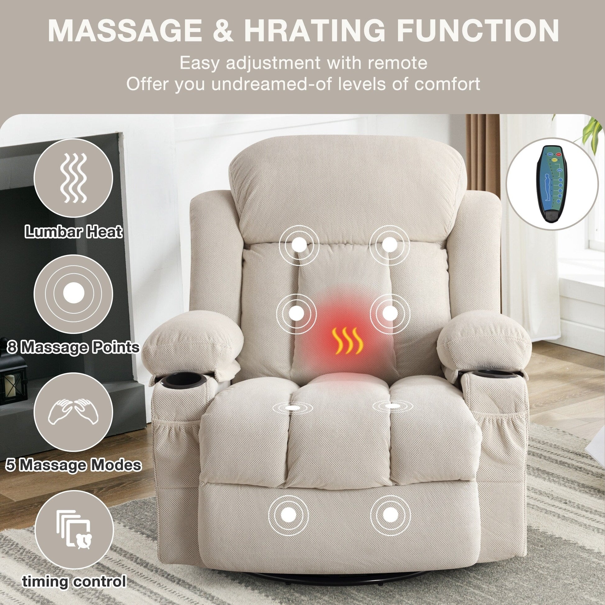 Fauteuil inclinable manuel chauffant de massage en velours à pois avec base pivotante à 360°