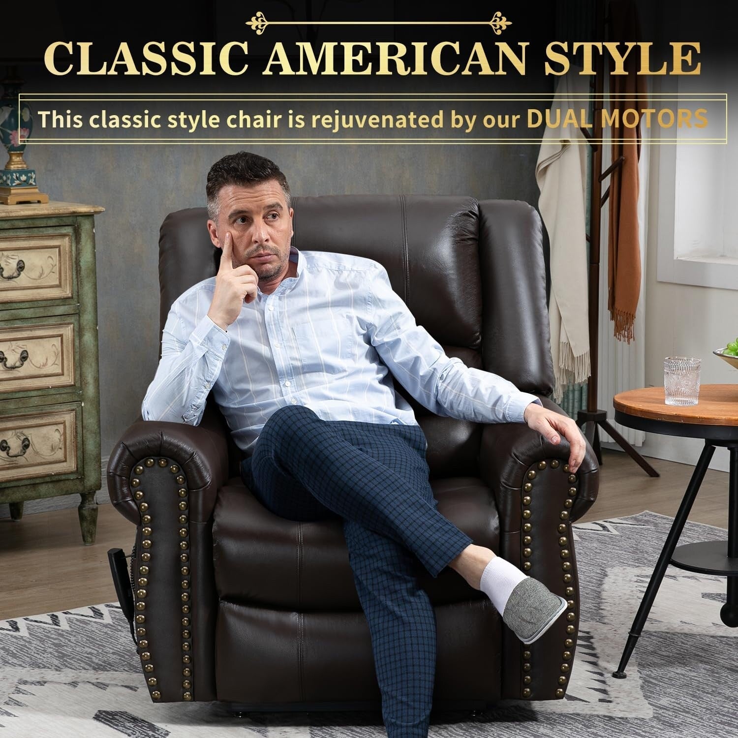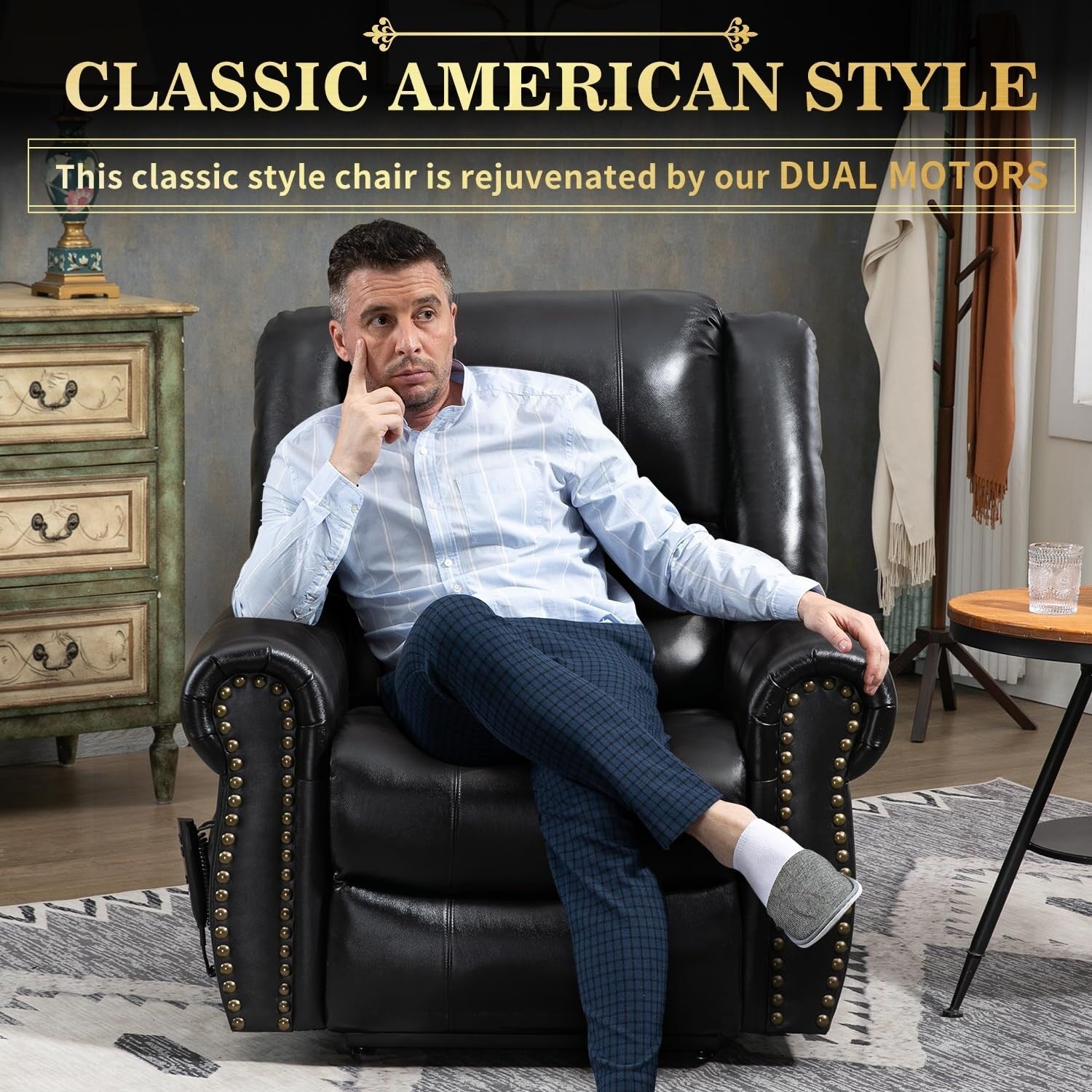 【 Massage et chauffage lombaire 】- Ce fauteuil releveur classique de style américain est dynamisé par nos puissants moteurs doubles et notre technologie de contrôle intelligente. 8 points de massage et un chauffage lombaire détendent la nuque, le dos, les hanches et les cuisses, tout en chauffant les lombaires. Il propose 3 modes de massage et 3 niveaux d'intensité à choisir selon vos envies. La fonction minuteur vous permet de vous endormir tout en profitant d'un massage relaxant. Notre nouvelle commande manuelle est facile à utiliser.