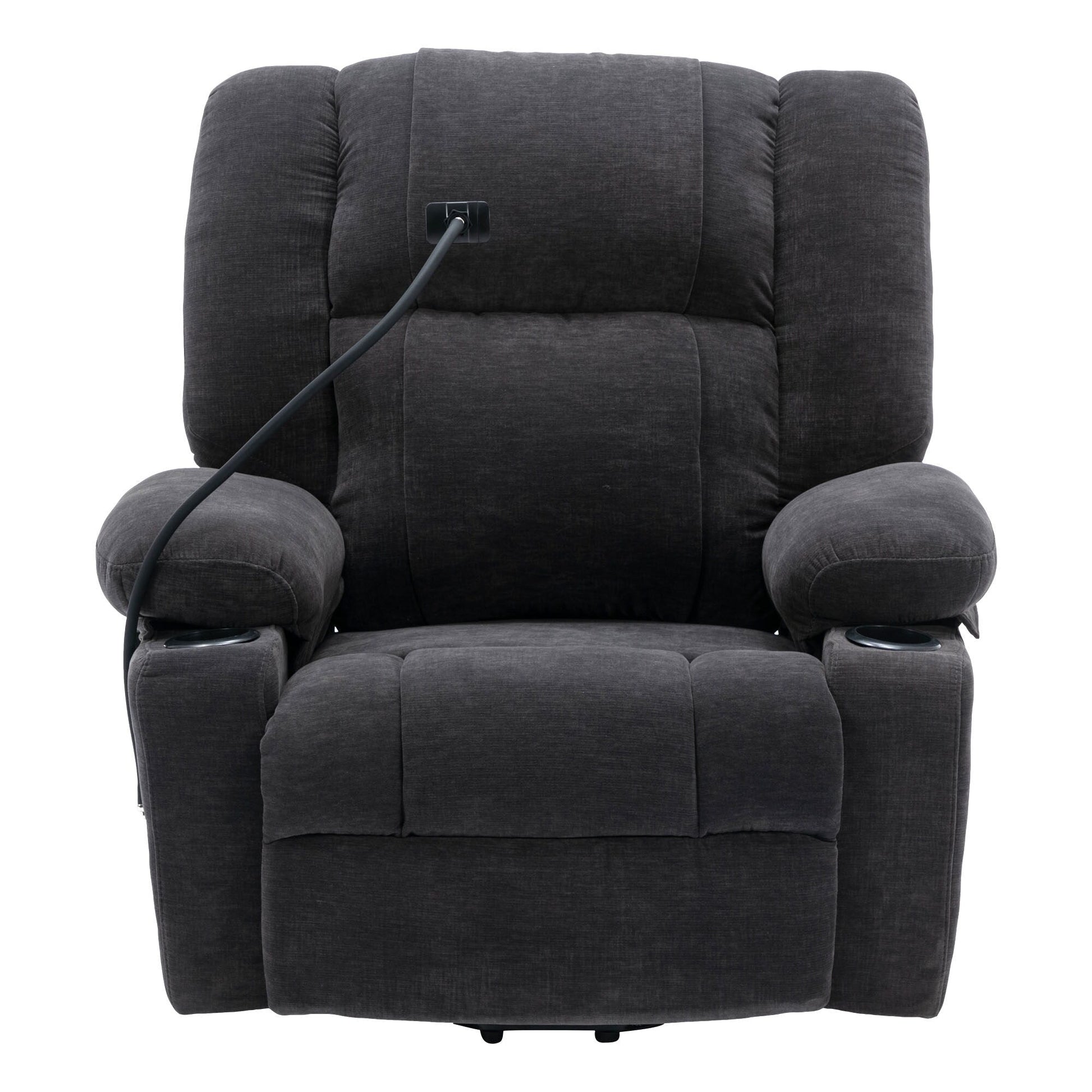 Fauteuil inclinable électrique avec massage, chauffage, support de téléphone rotatif à 360°, poches latérales et porte-gobelets pour personnes âgées