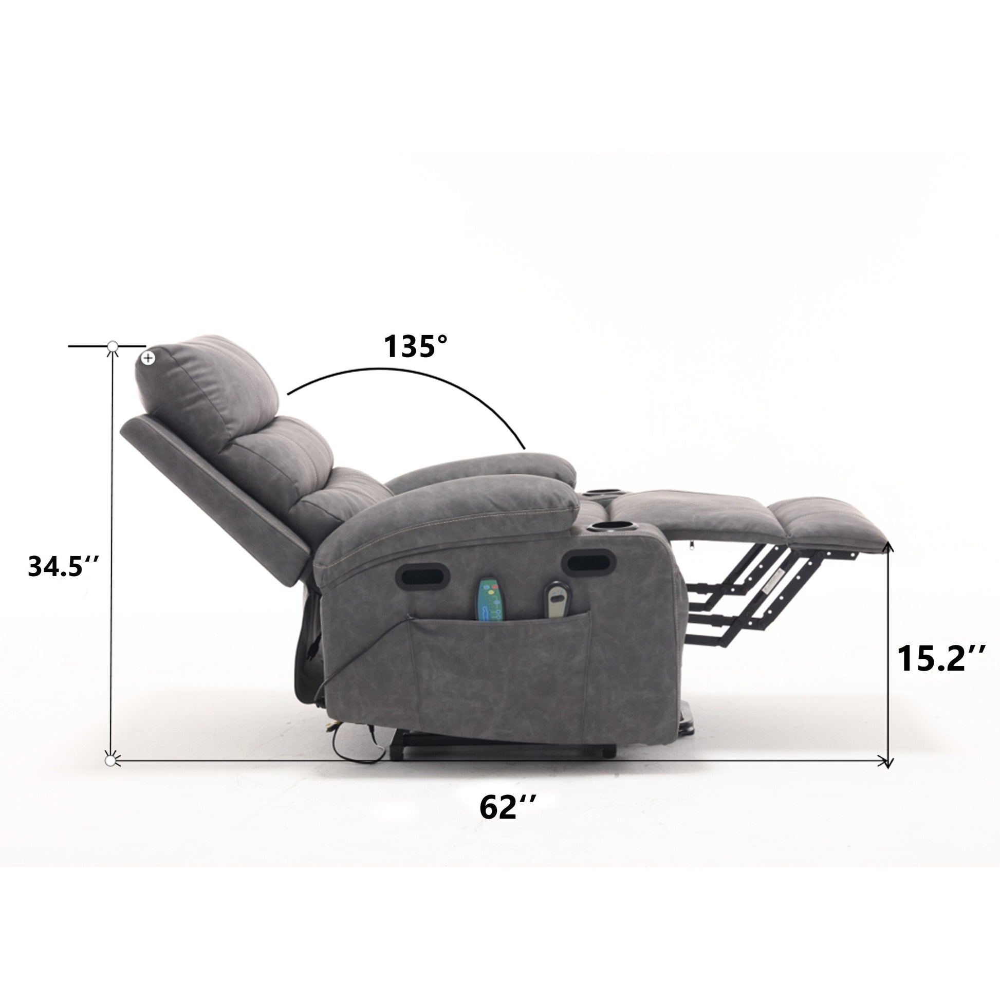 Canapé inclinable électrique avec massage par vibrations à 8 points, chauffage, minuterie réglable, télécommande et porte-gobelet