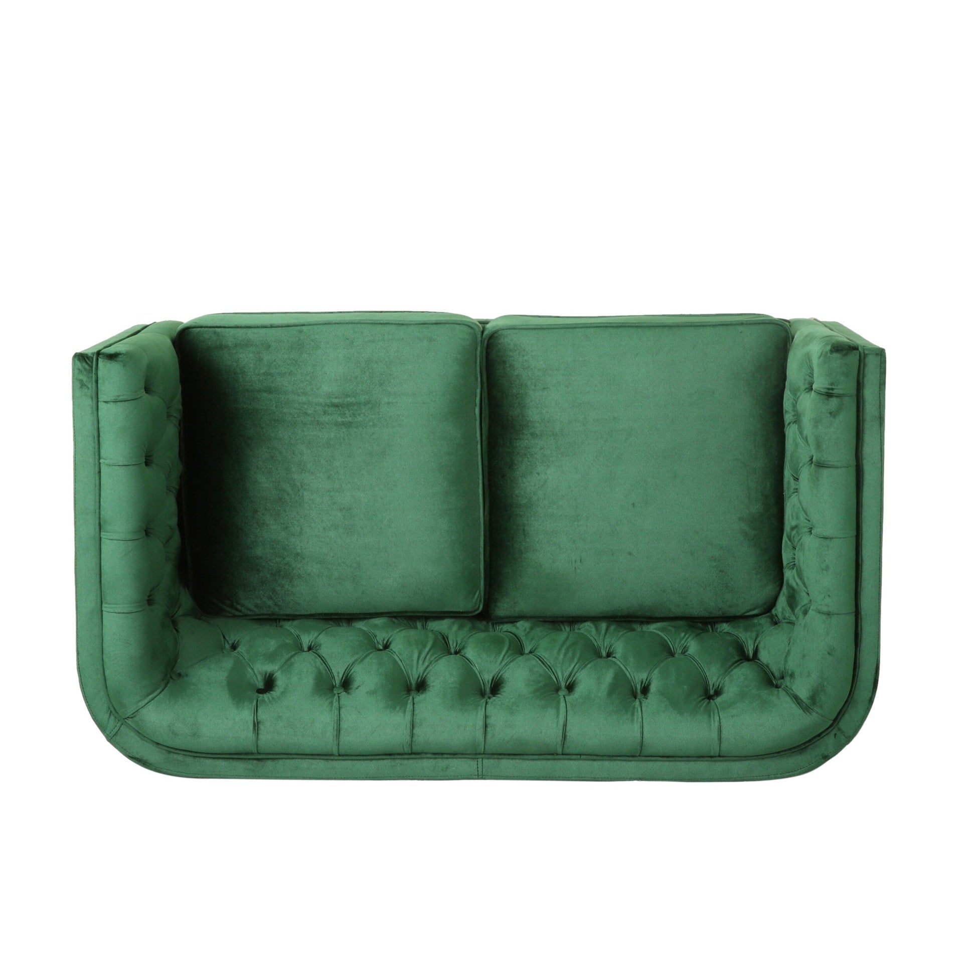 Canapé capitonné à boutons Emerald Loveseat avec pieds en bois