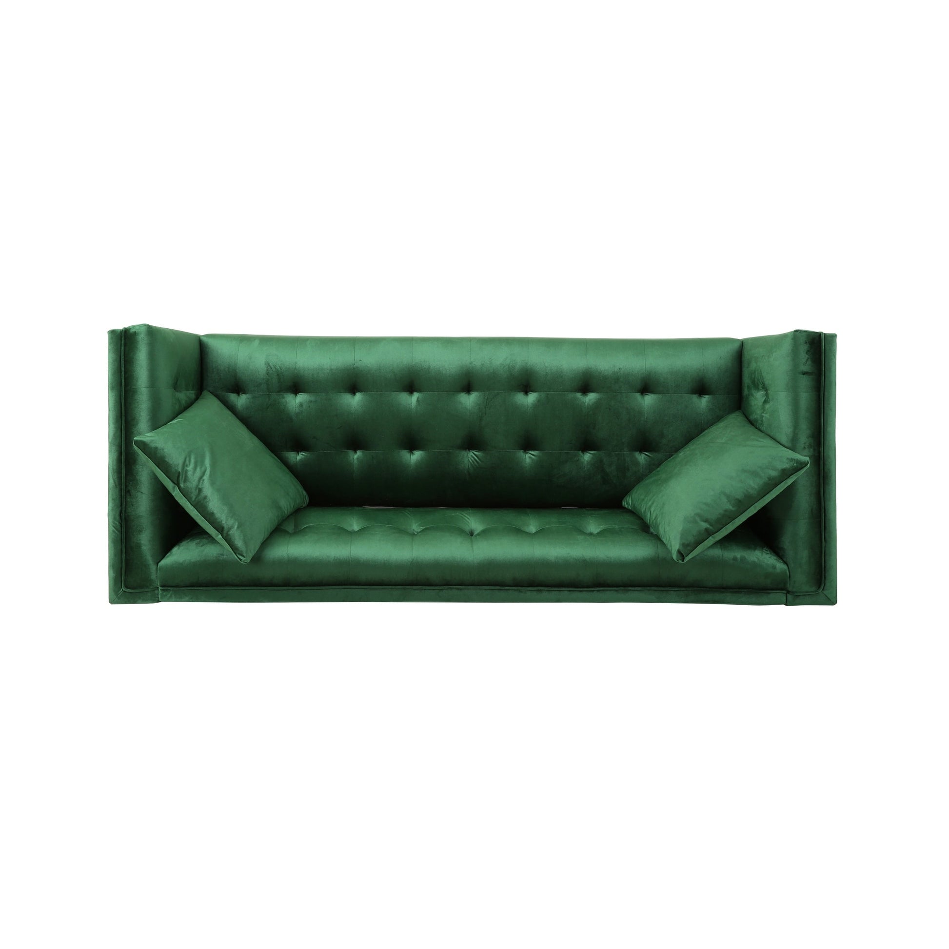 Canapé 3 places en velours Emerald Modern 86,75 avec coussins et cadre robuste pour le salon