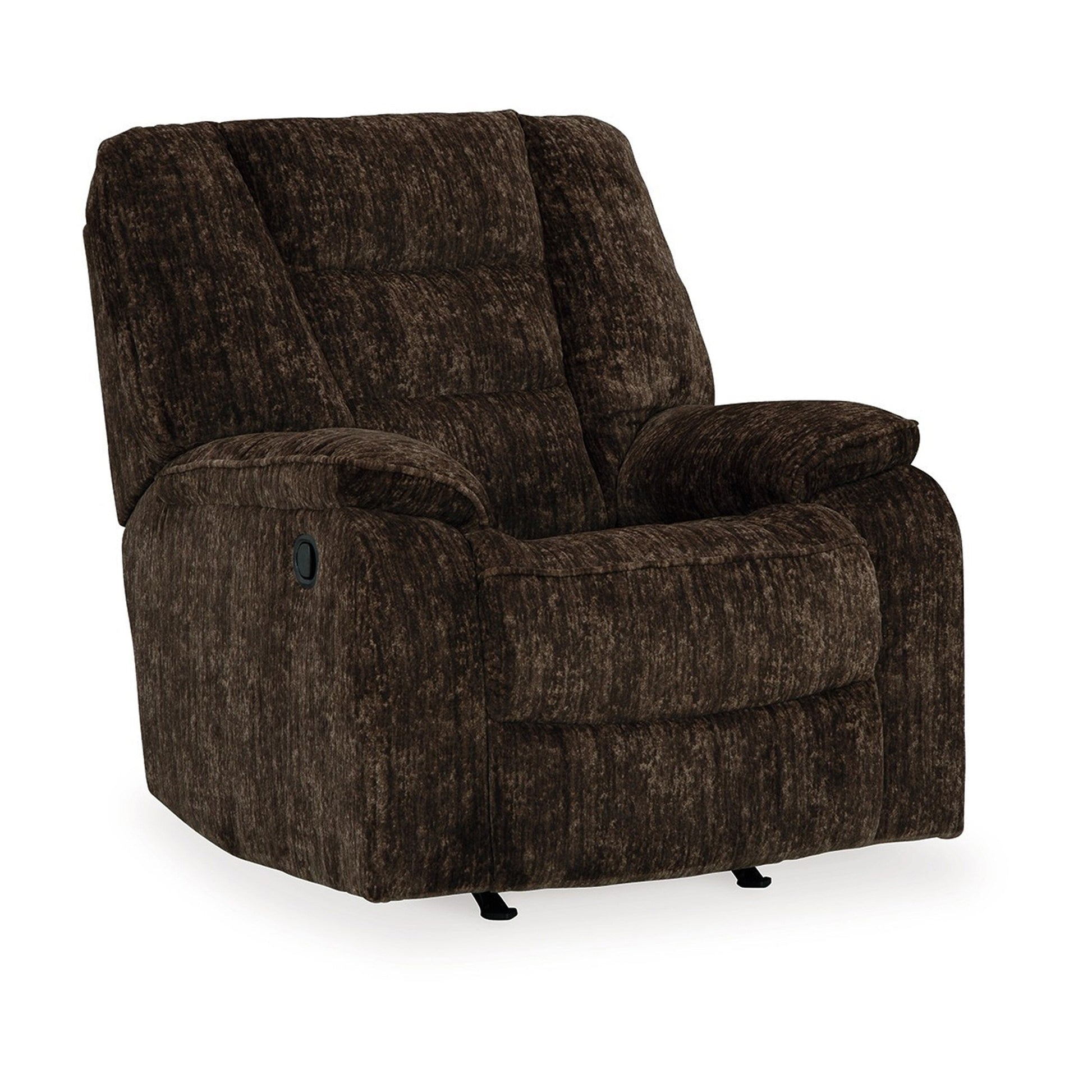 Détendez-vous dans un confort ultime avec le fauteuil à bascule inclinable Soundwave marron chocolat. Conçu pour une détente luxueuse, il est doté d'un revêtement en polyester, d'une assise profonde et d'accoudoirs moelleux. Son système d'inclinaison par tirette vous permet de trouver facilement la position idéale, tandis que le doux balancement favorise la détente. Découvrez notre collection Enzo pour plus d'options.
