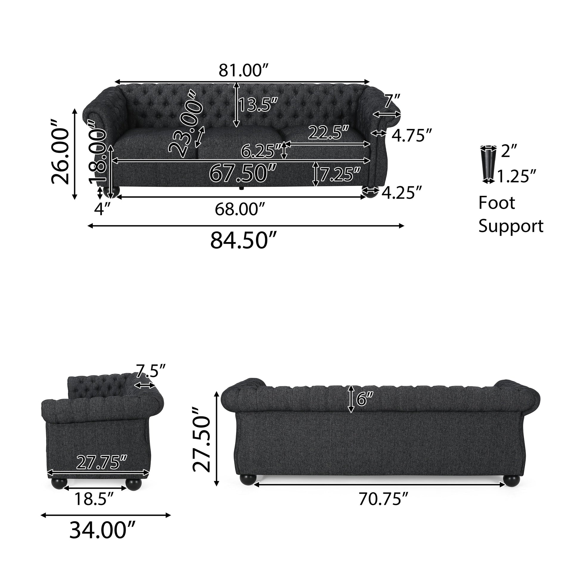 - Dimensions : 34,00 pouces de profondeur x 84,50 pouces de largeur x 27,50 pouces de hauteur