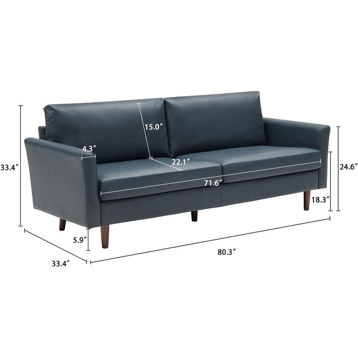 Canapé 3 places en similicuir avec pieds en bois et coussins rembourrés