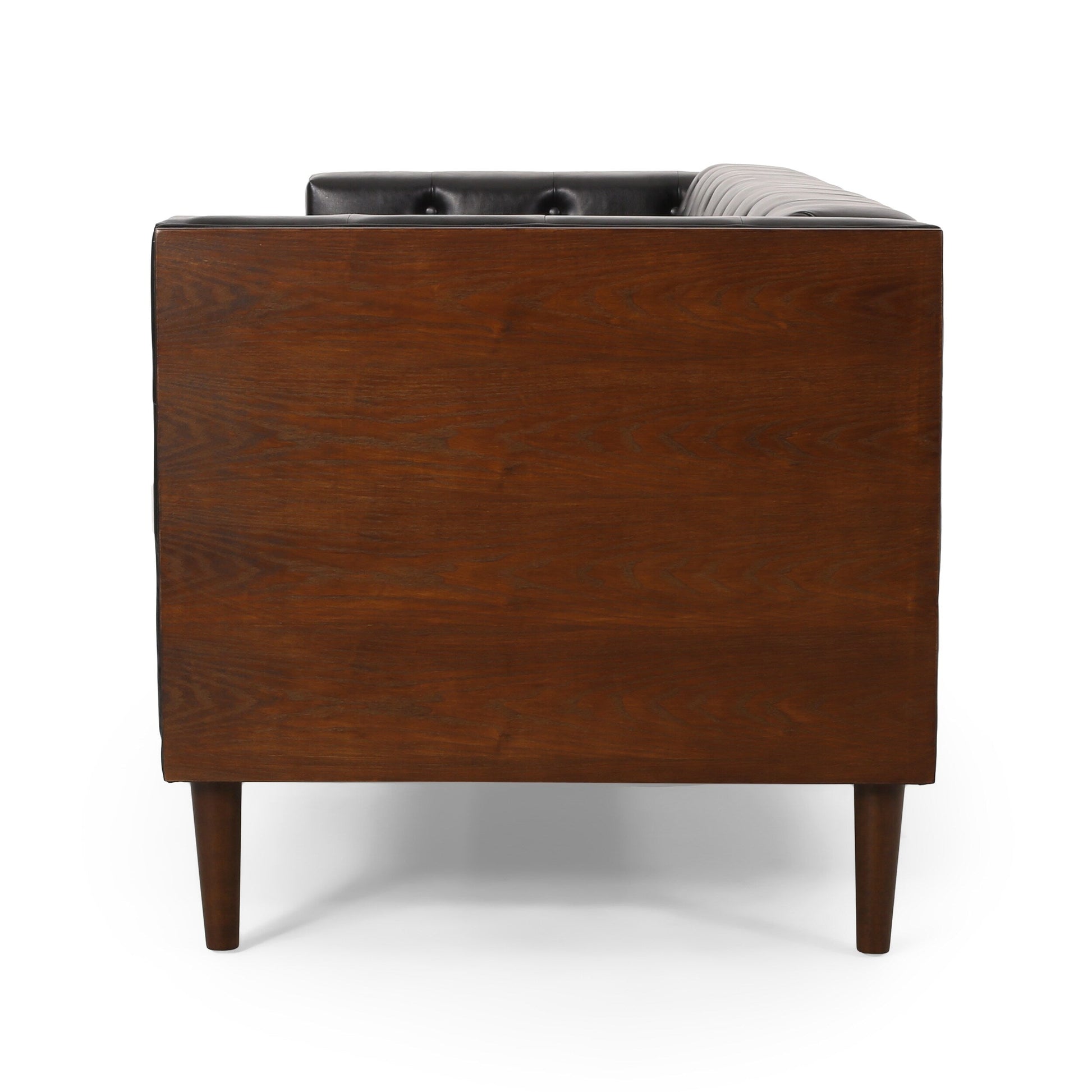Canapé 3 places capitonné en similicuir avec pieds en bois de bouleau