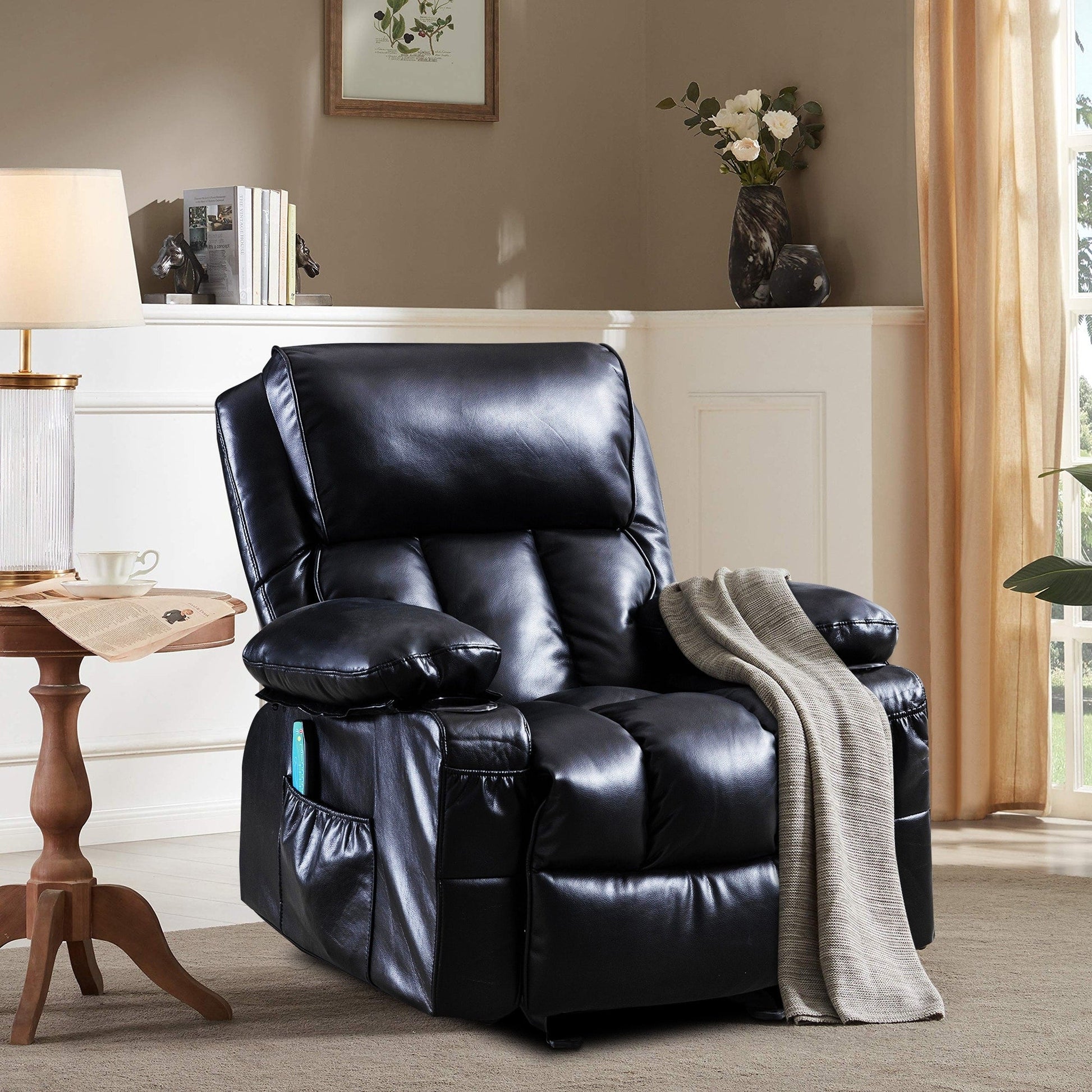 Fauteuil inclinable massant en similicuir, fauteuil à bascule inclinable, fonction chauffante
