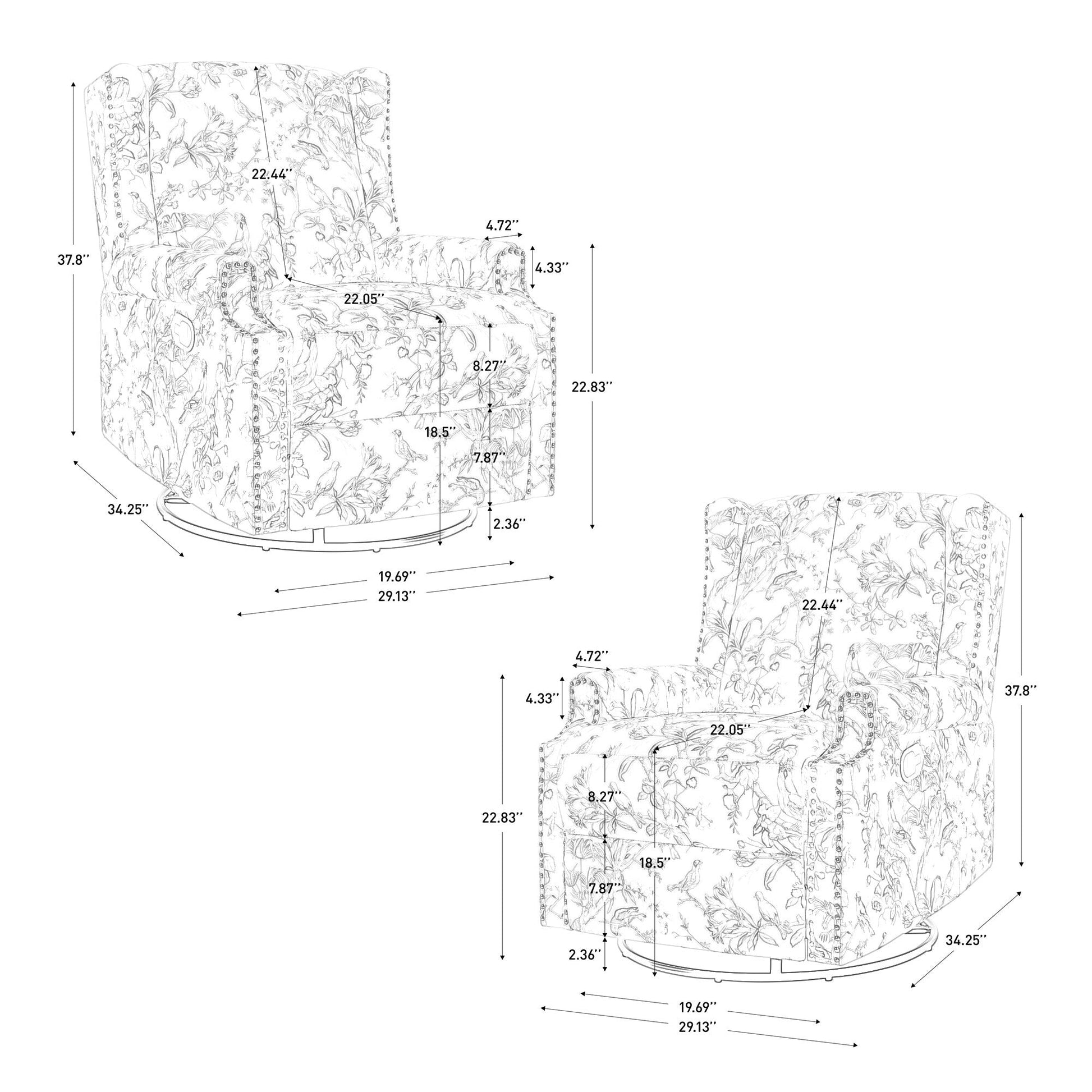 Transformez votre espace de vie avec ce fauteuil inclinable floral magnifiquement conçu, disponible en deux modèles polyvalents : l'un avec une base pivotante à 360° pour une rotation et une mobilité fluides, et l'autre avec des pieds en bois massif pour un style plus traditionnel et épuré. Que vous préfériez la flexibilité moderne ou l'élégance intemporelle, les deux versions offrent un confort durable et un charme visuel. Revêtu d'un tissu en coton et lin de qualité supérieure, ce fauteuil est doux et respirant, idéal pour se détendre longtemps. Son motif floral et botanique apporte une touche vibrante et naturelle à votre espace, parfait pour égayer un salon, un coin lecture ou un coin chambre. Inclinez-le facilement grâce à un levier latéral pour trouver la position idéale. Le repose-pieds intégré se déploie automatiquement lorsque vous vous penchez en arrière, offrant un soutien complet pour les jambes, idéal pour la sieste, la lecture ou la télévision.