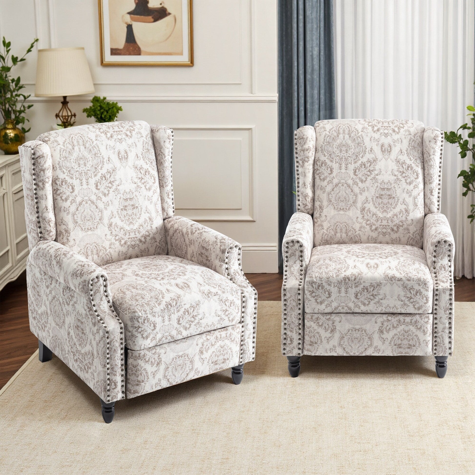 Lot de 2 fauteuils inclinables manuels en lin fleuri avec repose-pieds