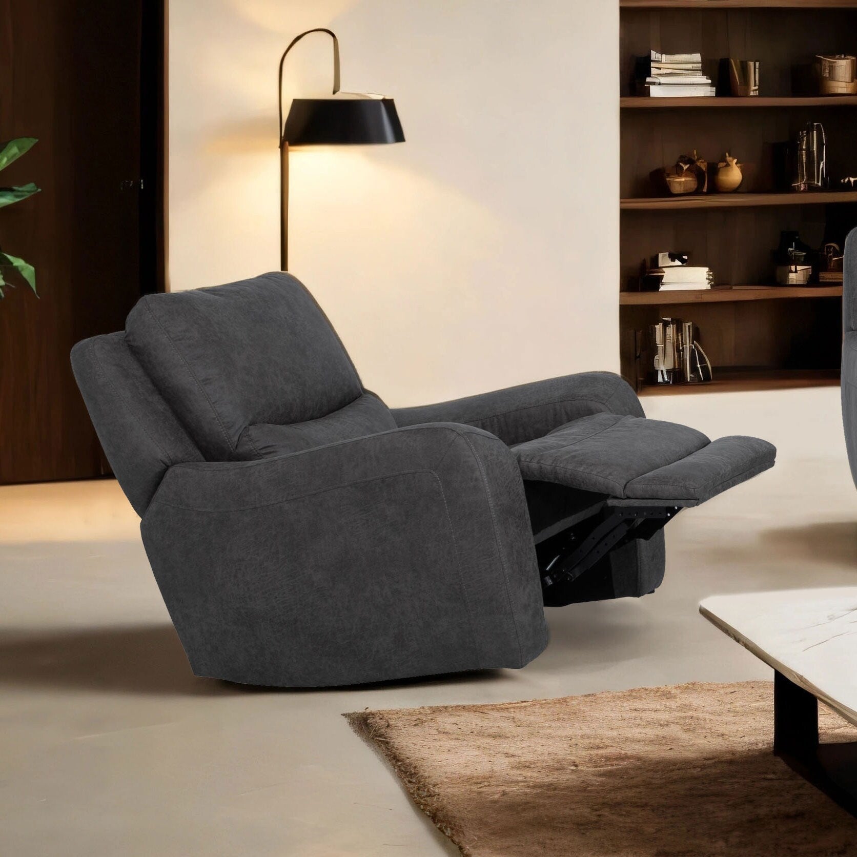Plongez dans le confort de ce fauteuil inclinable contemporain surdimensionné, disponible en marron ou gris foncé. Doté d'un dossier inclinable électrique moelleux d'une place et demie, d'accoudoirs souples et d'un soutien d'assise avancé, il est idéal pour se détendre après une longue journée. Les ports USB-A et USB-C intégrés permettent de recharger vos appareils pendant votre détente.