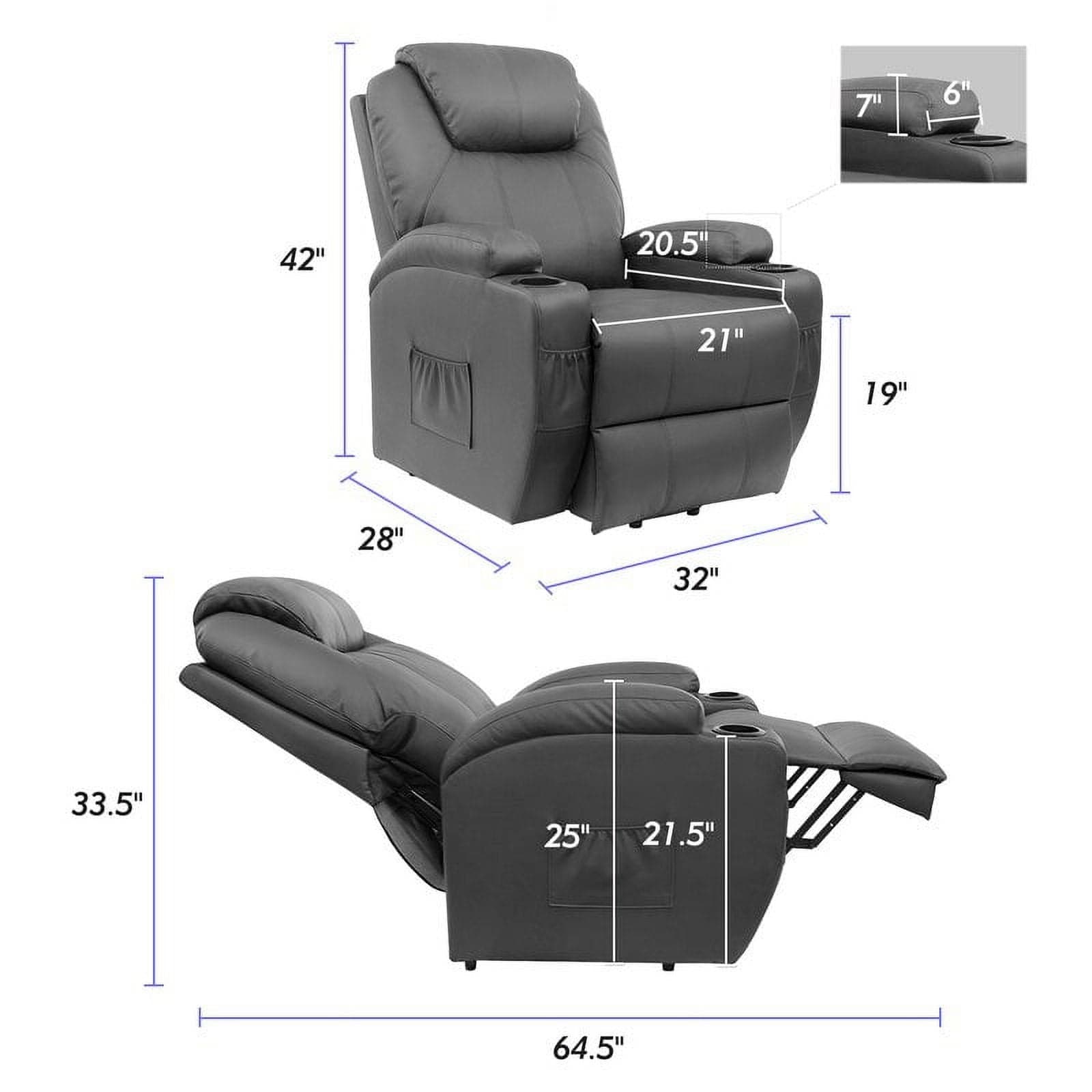 Le fauteuil inclinable Furniwell vous offre un confort optimal grâce à ses nombreuses fonctionnalités, dont un massage à huit points et un dispositif chauffant pour soulager la fatigue et détendre le corps. Inclinable jusqu'à 160 degrés, il vous permet de dormir confortablement. Ses larges assises et accoudoirs sont dotés de poches latérales surdimensionnées pour la télécommande. Ce fauteuil inclinable vous offre une expérience incomparable.