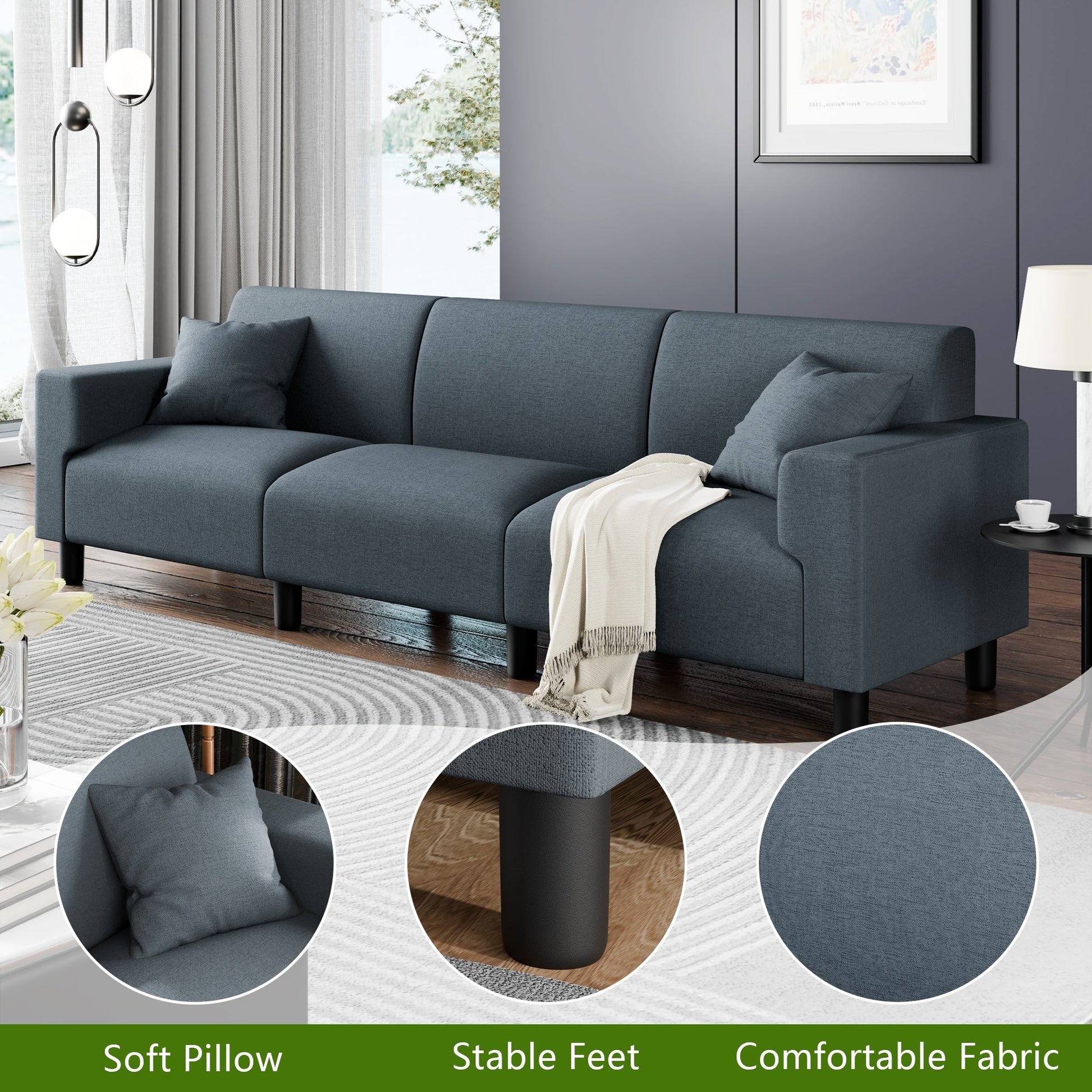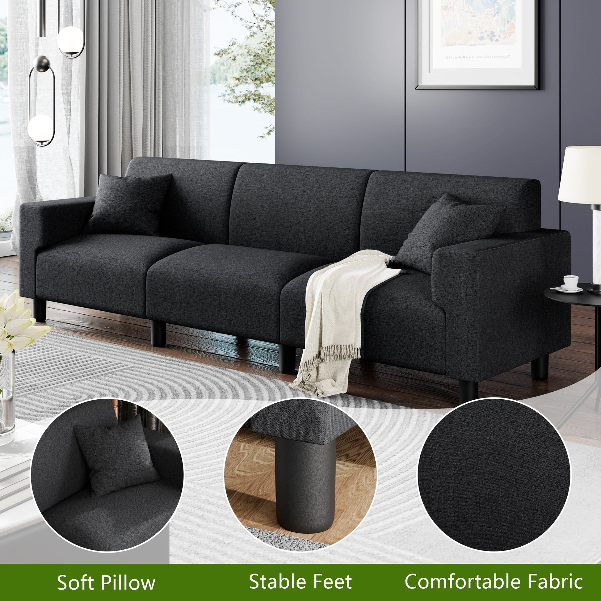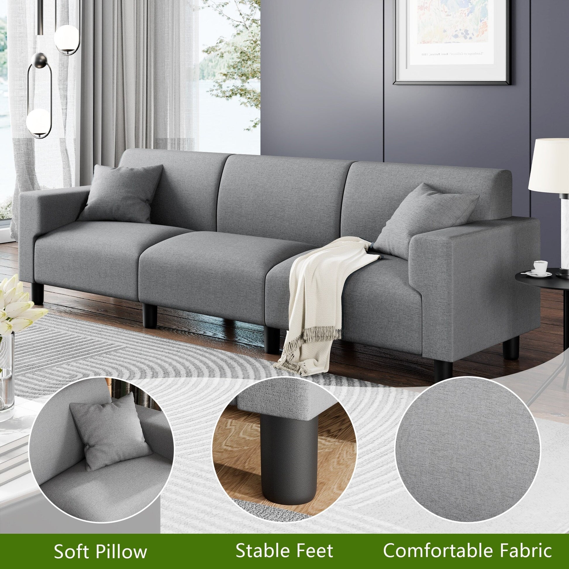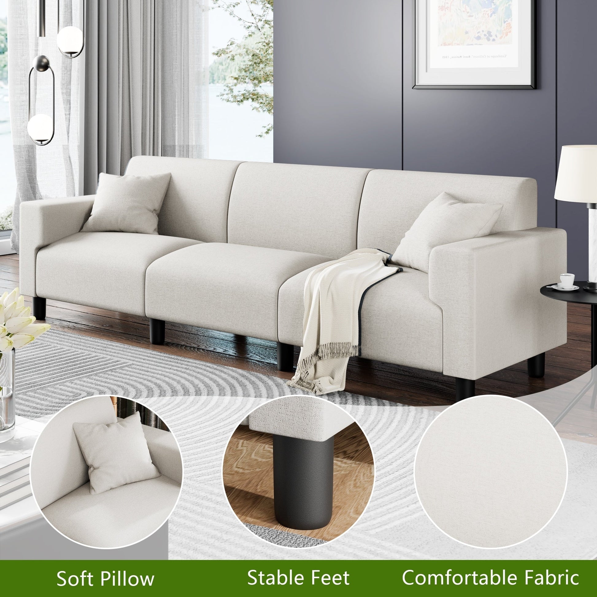 Canapé-lit Futzca 94'', canapé 3 places moderne avec deux oreillers