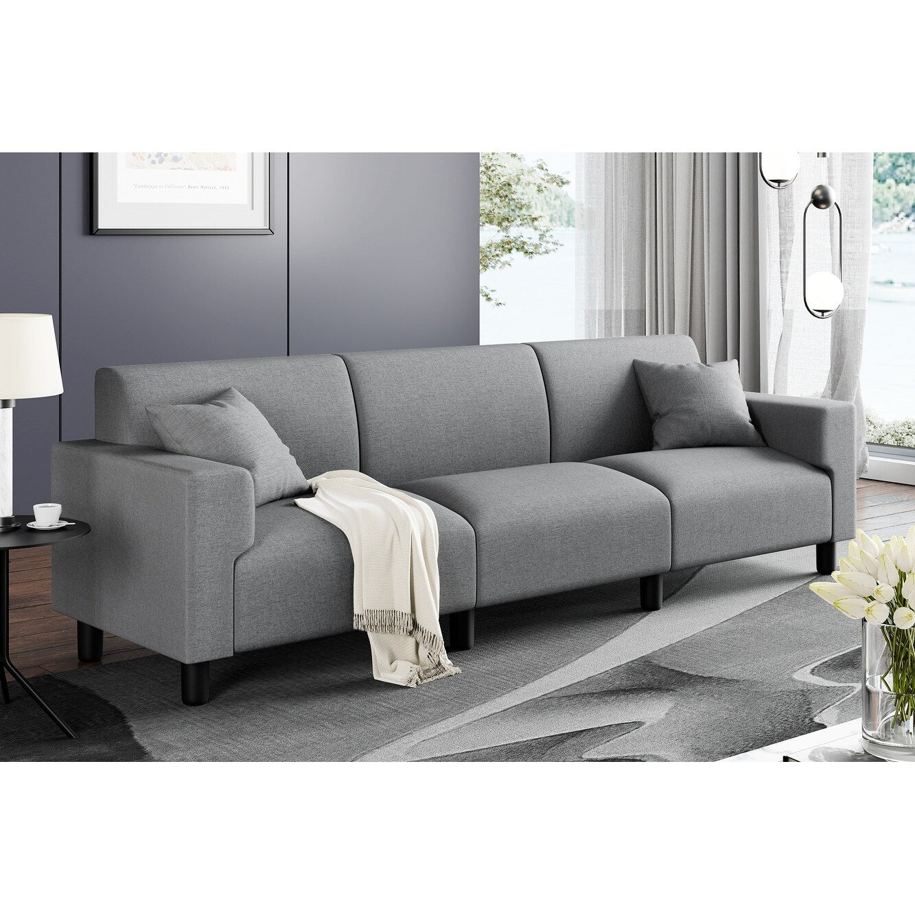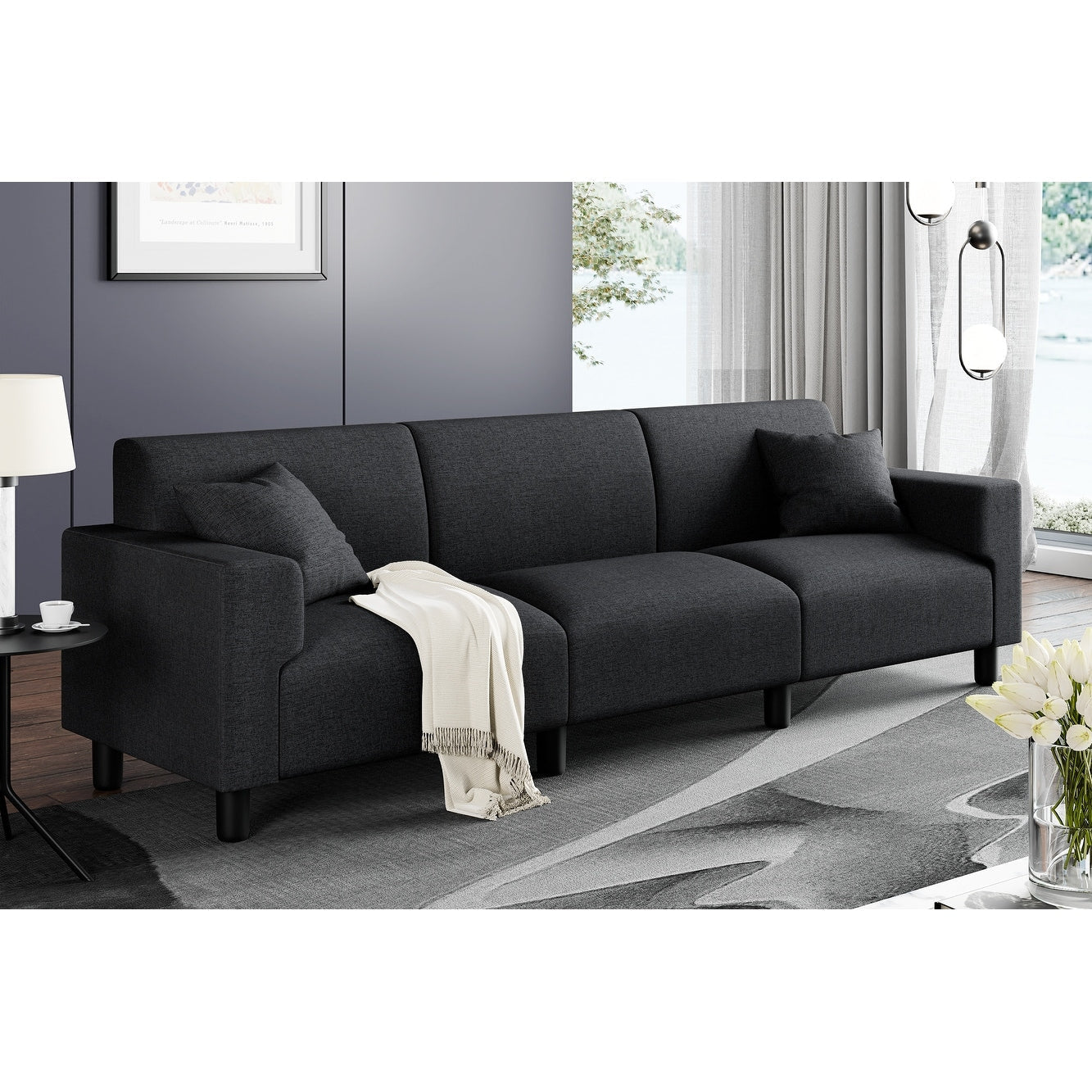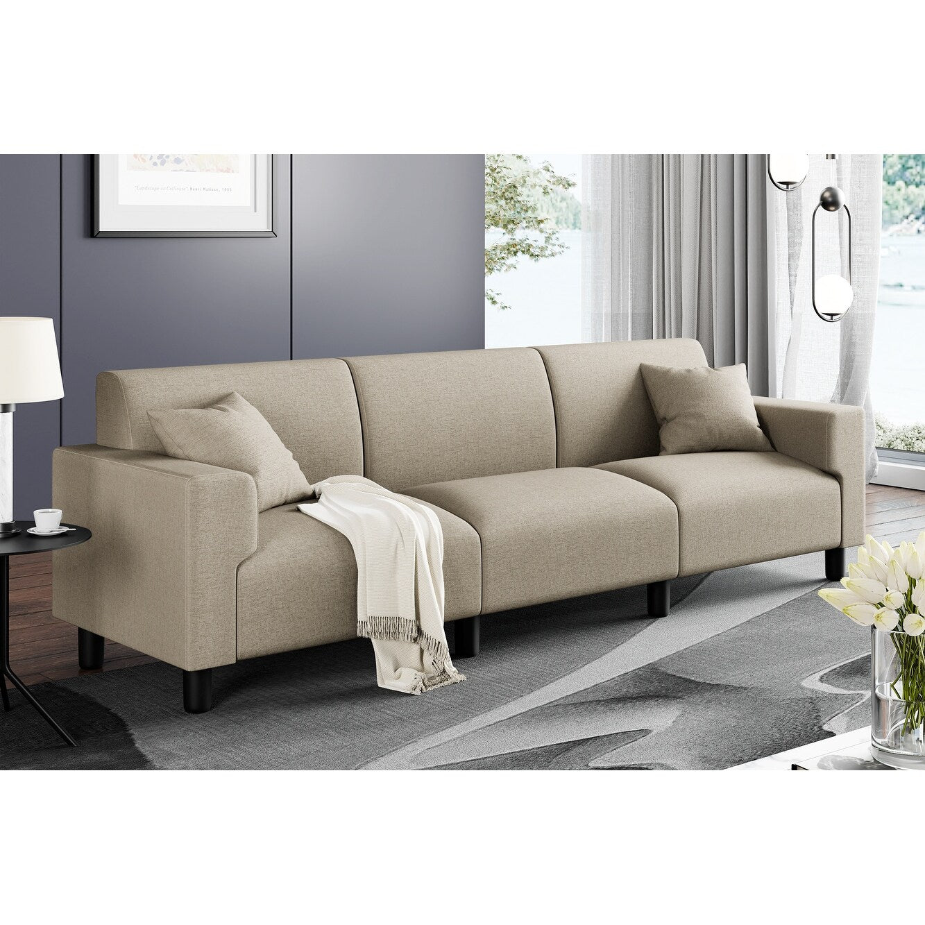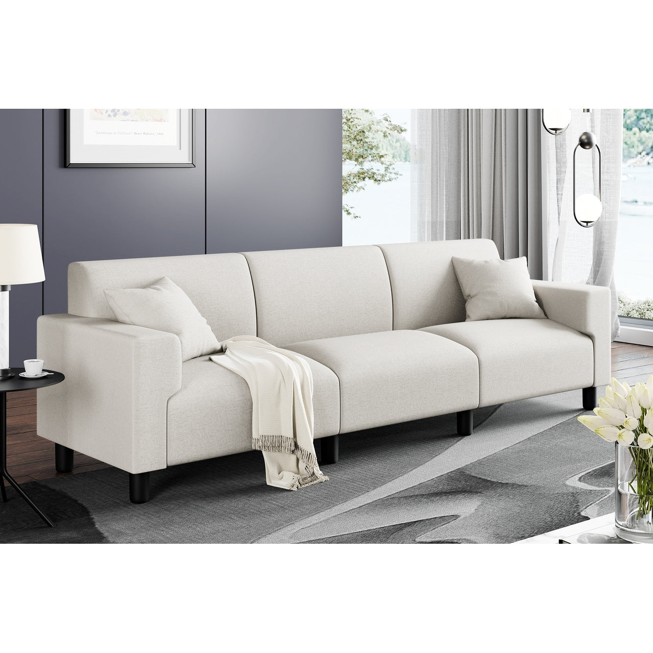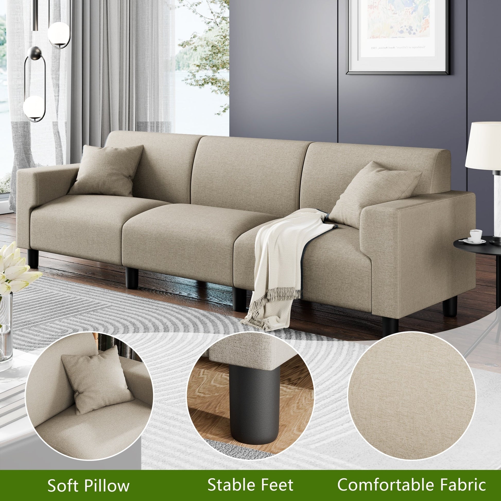 Canapé-lit Futzca 94'', canapé 3 places moderne avec deux oreillers
