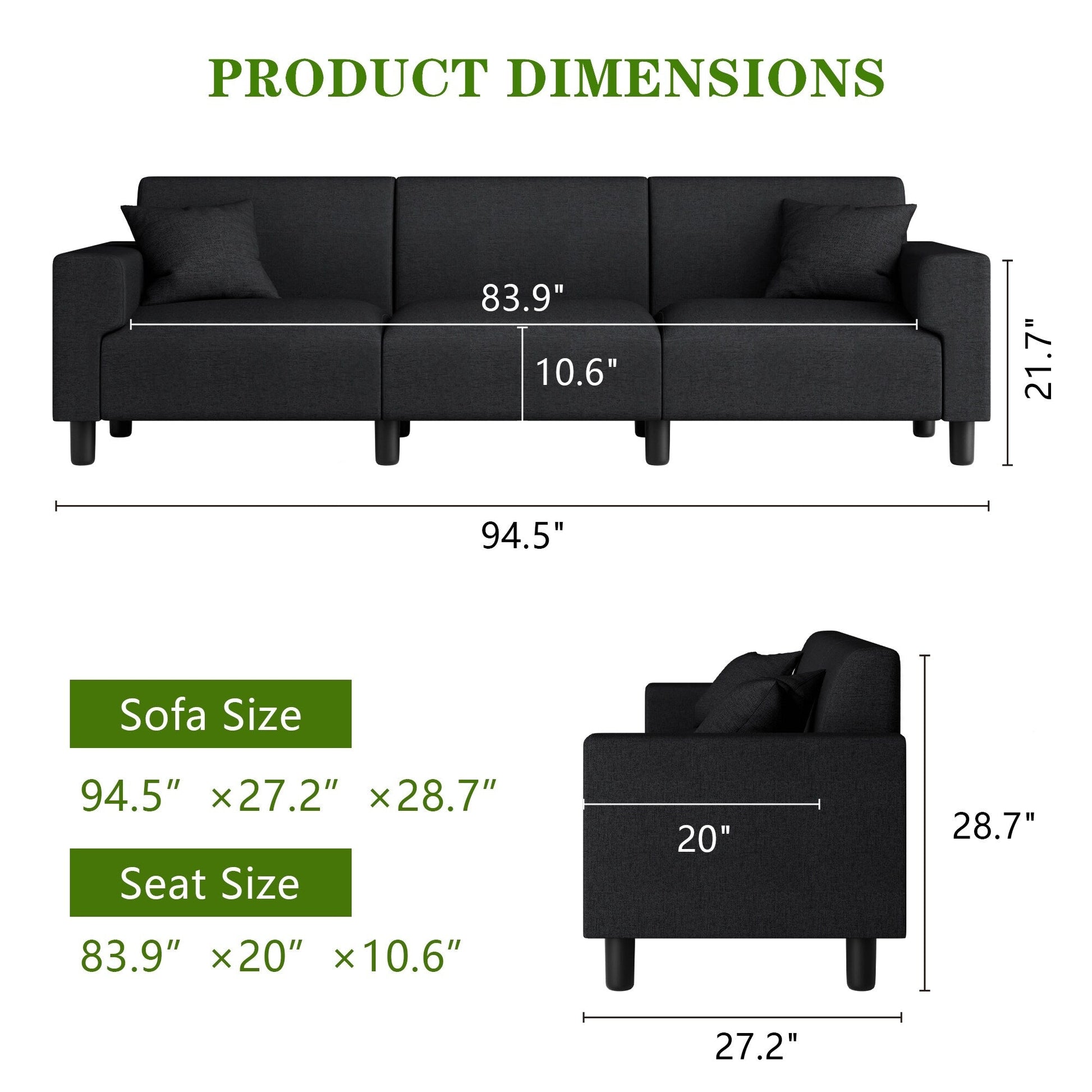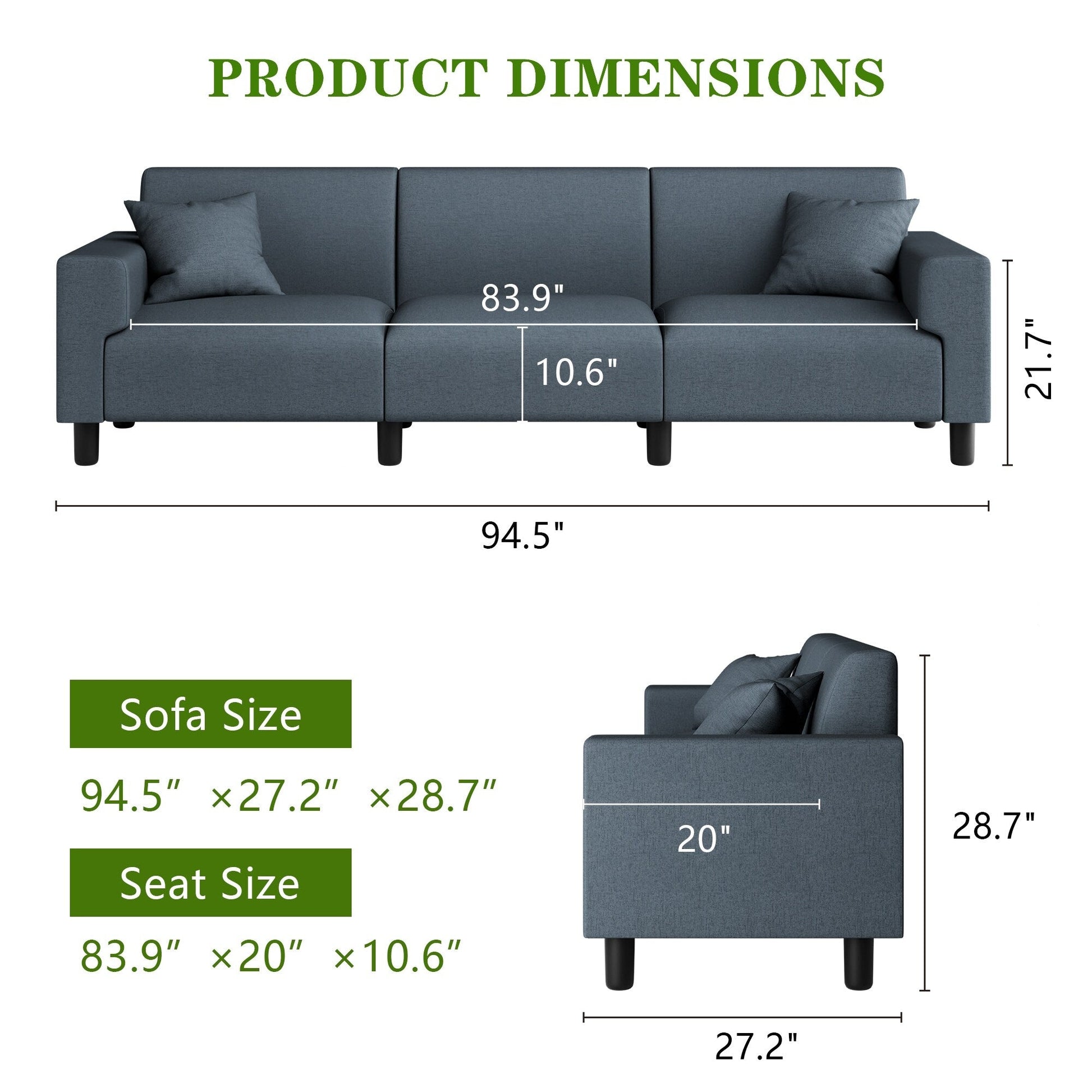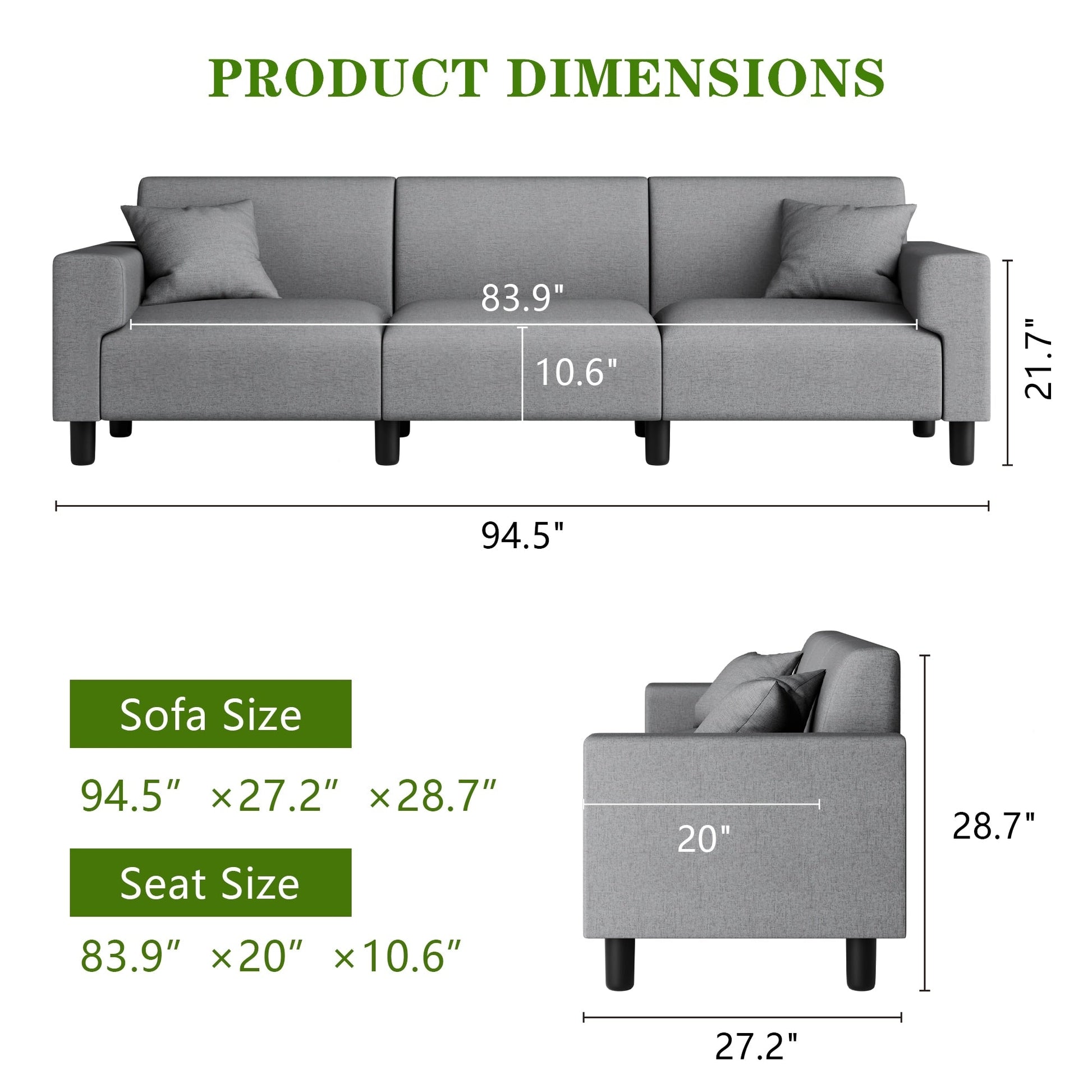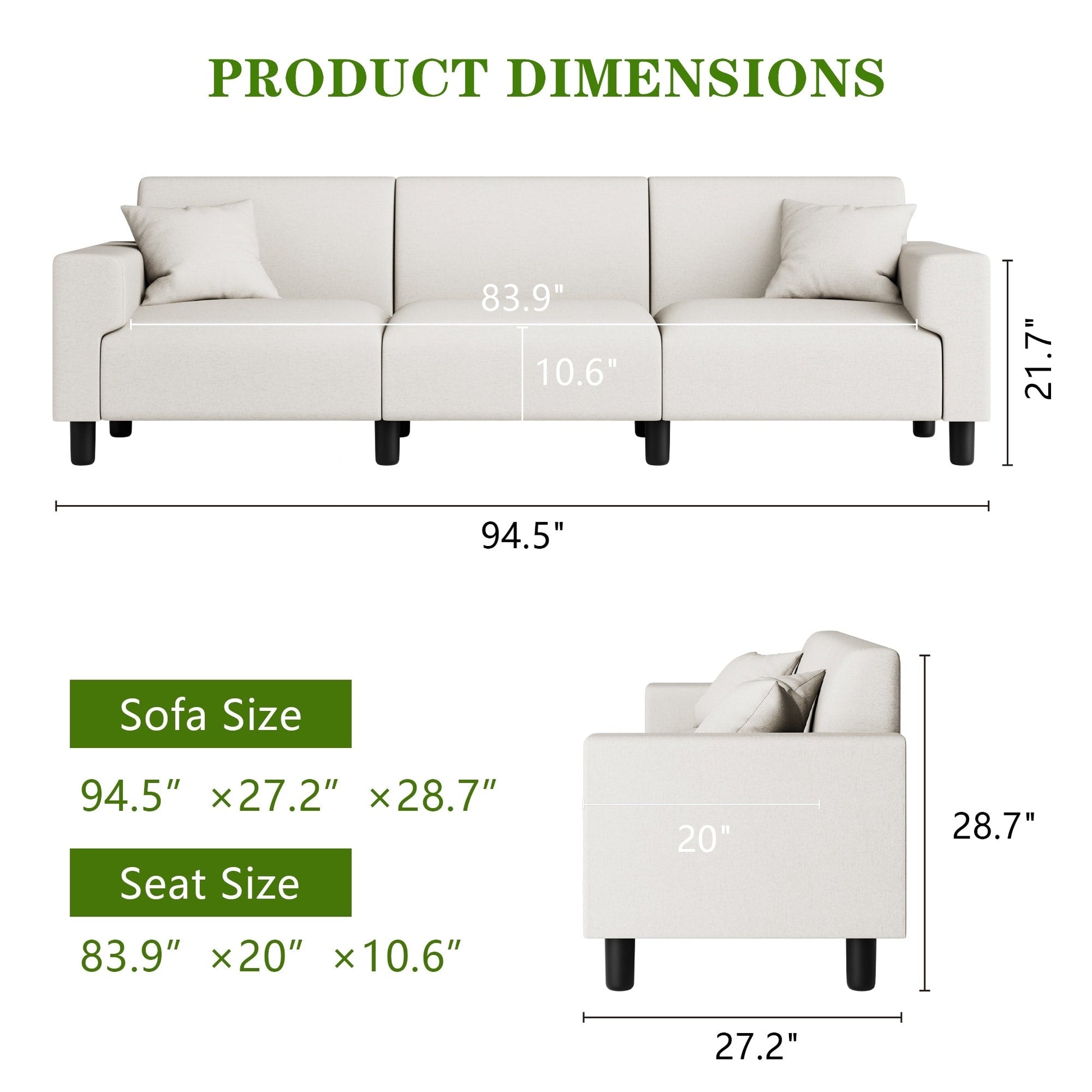 Canapé-lit Futzca 94'', canapé 3 places moderne avec deux oreillers