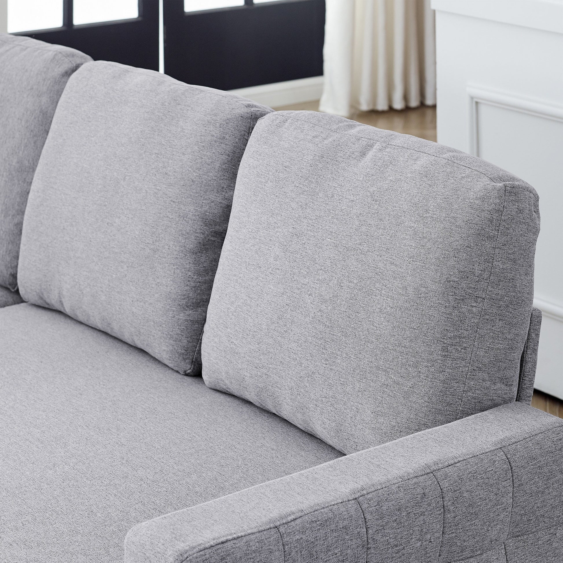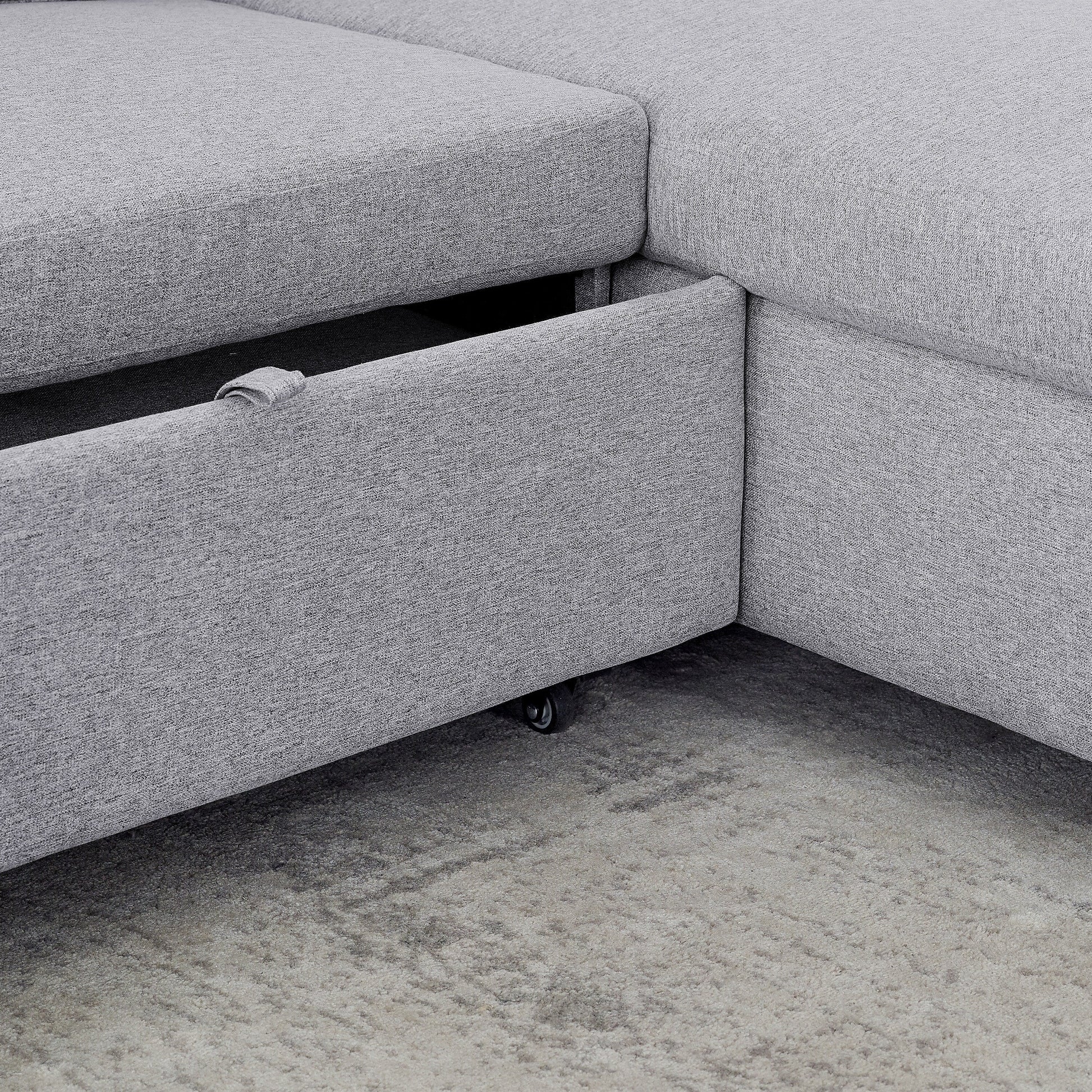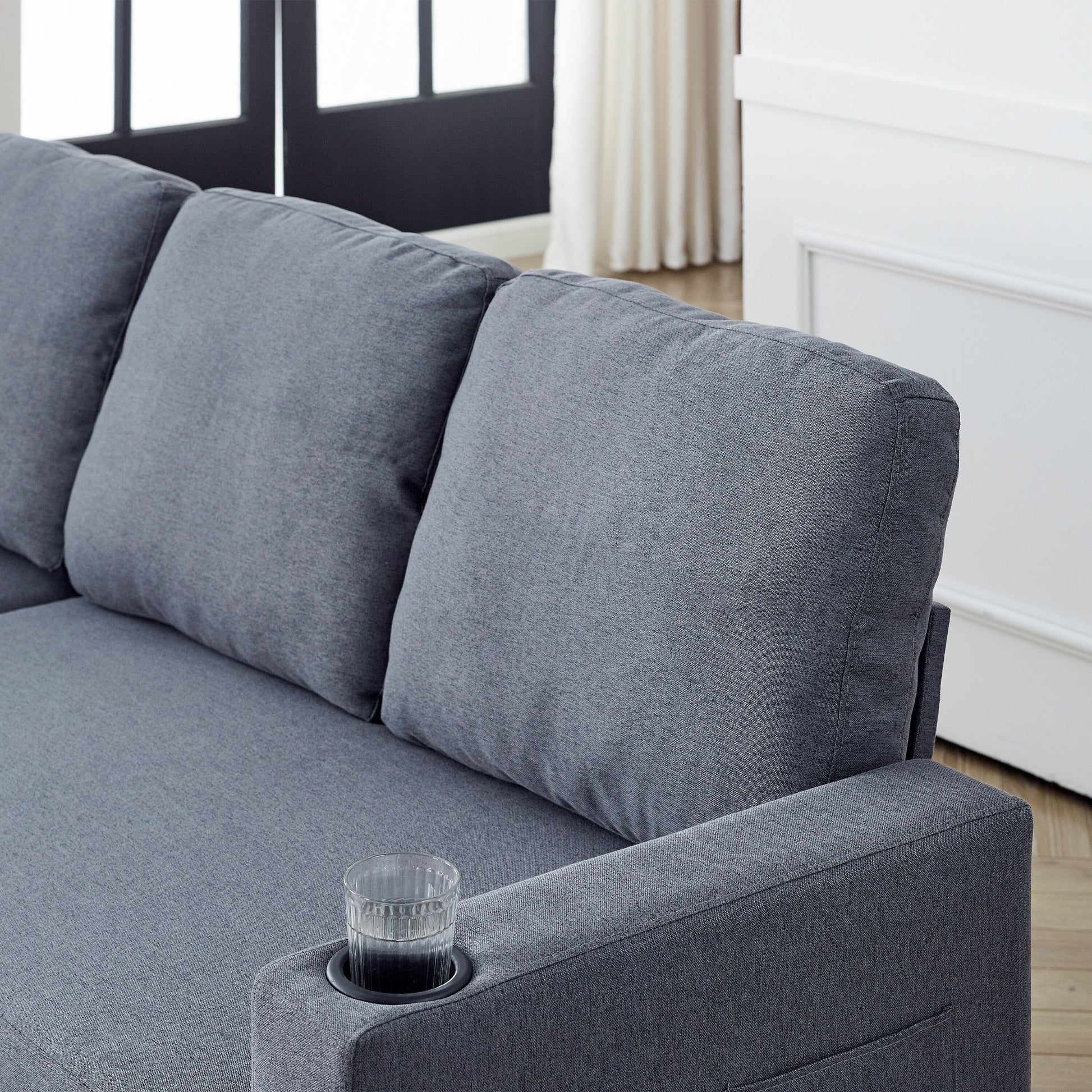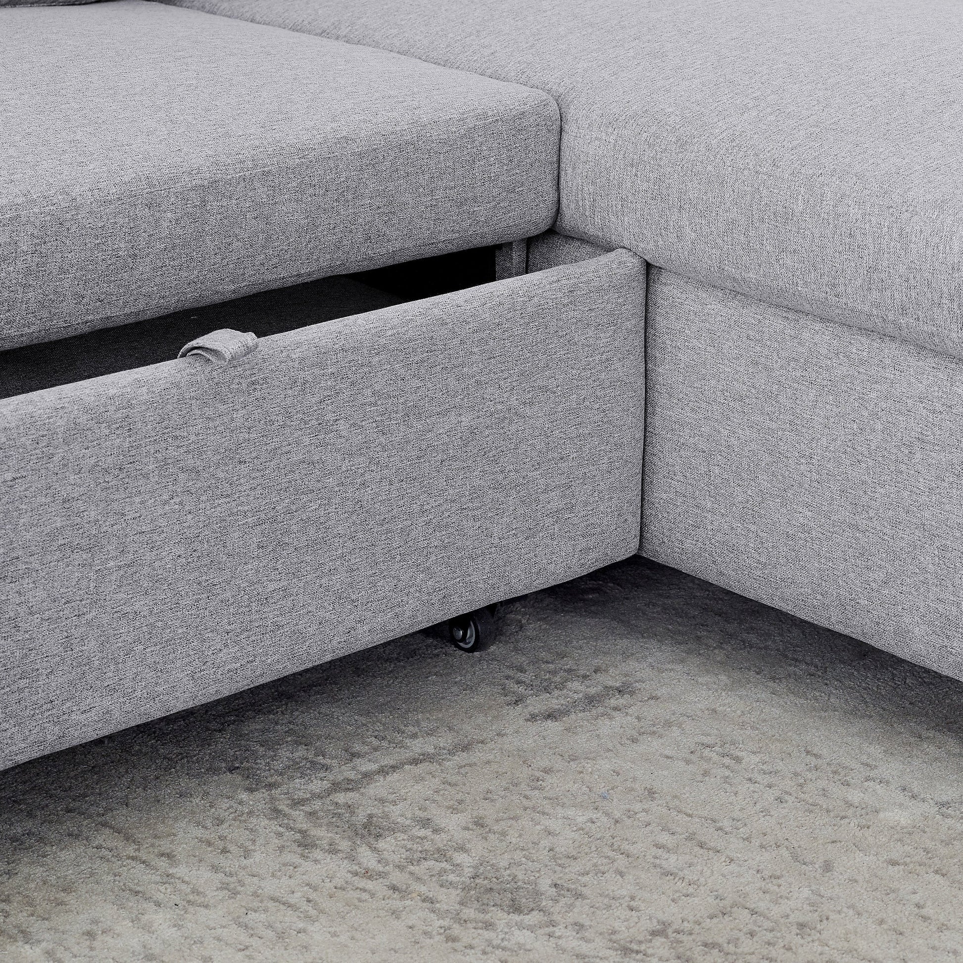 Ce canapé moderne rembourré, confectionné dans des tissus doux, s'agence et se transforme facilement pour s'adapter à tous les espaces de vie, petits ou grands. Il comprend une assise d'angle gauche et une assise d'angle droit. L'assise rembourrée peut être placée à droite ou à gauche. Vous pouvez choisir la position et la forme qui vous conviennent. Le canapé-lit est équipé d'un tiroir coulissant à l'extrémité, équipé d'une poignée et d'une poulie inférieure pour une transformation rapide. Il répond à tous vos besoins et vous évite les invités inattendus. Notre canapé est moelleux et doté de coussins en mousse haute densité pour un confort et un soutien optimaux. Son moelleux optimal et ses coussins extra-moelleux procurent une sensation de détente. Il peut accueillir une télécommande ou des livres.