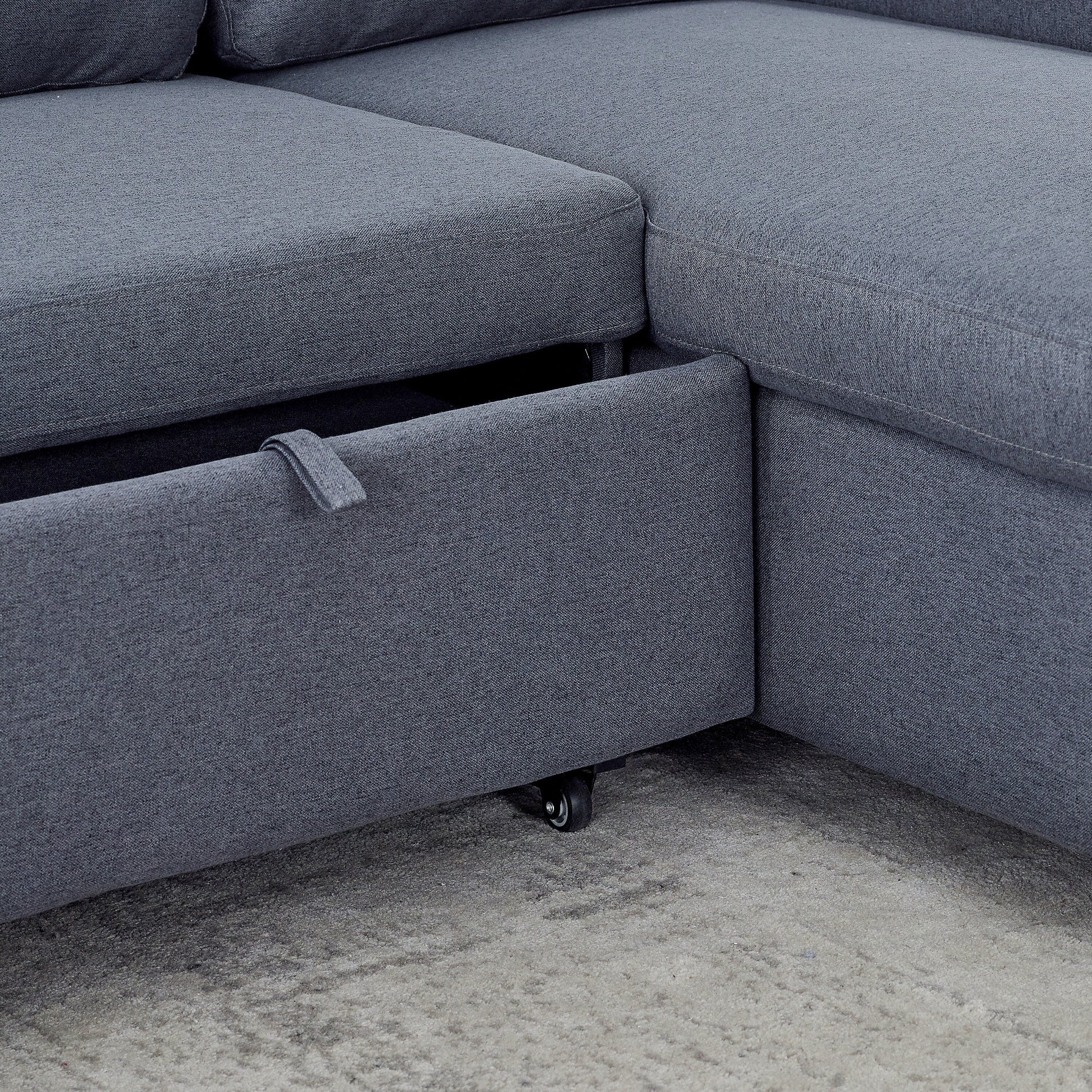 Canapé-lit réversible FX 78.8 avec lit gigogne, canapé-lit confortable en lin en forme de L, mobilier de salon S