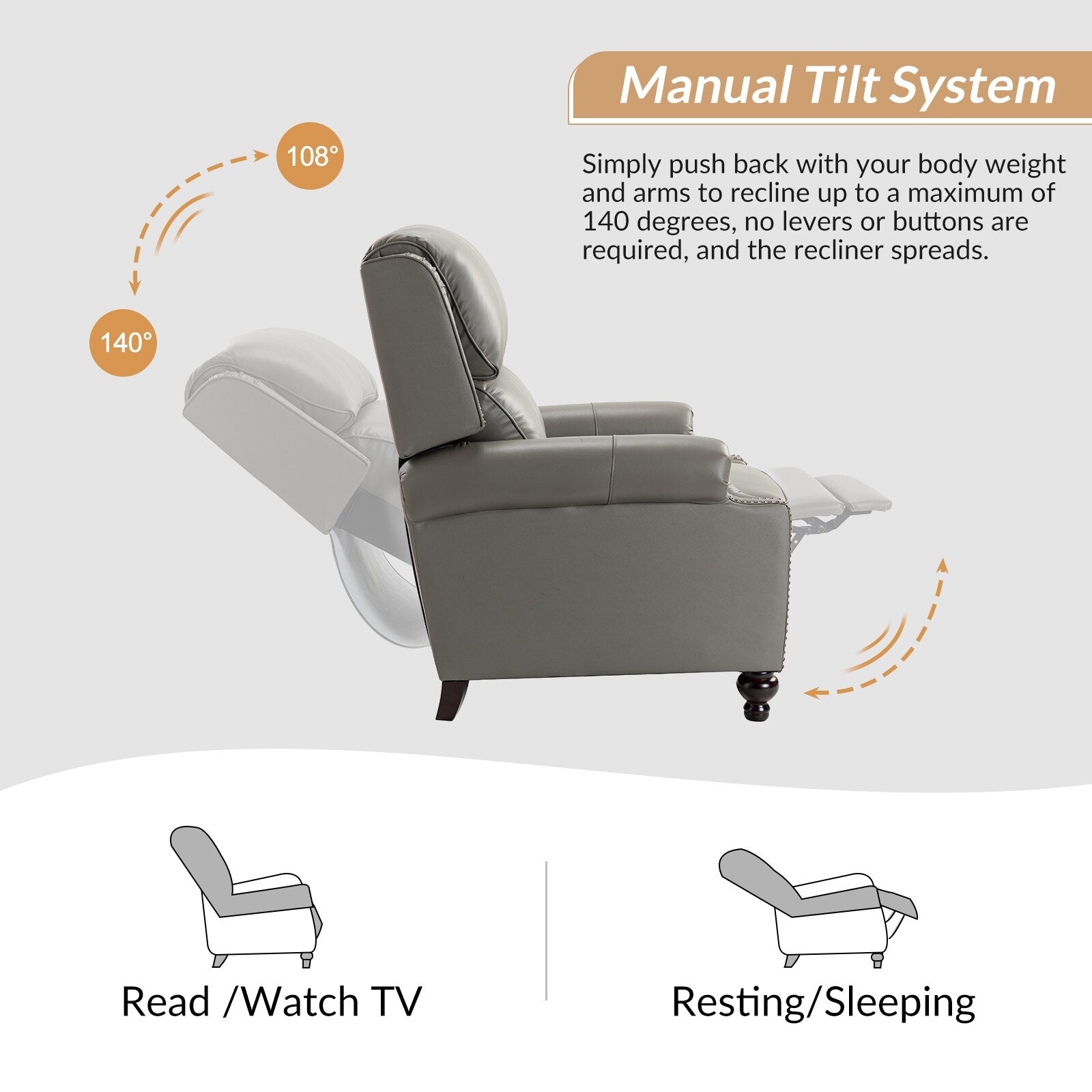 Ensemble de 2 fauteuils inclinables Gabriela en cuir véritable, style Mid-Century Modern, avec garniture cloutée, par HULALA HOME