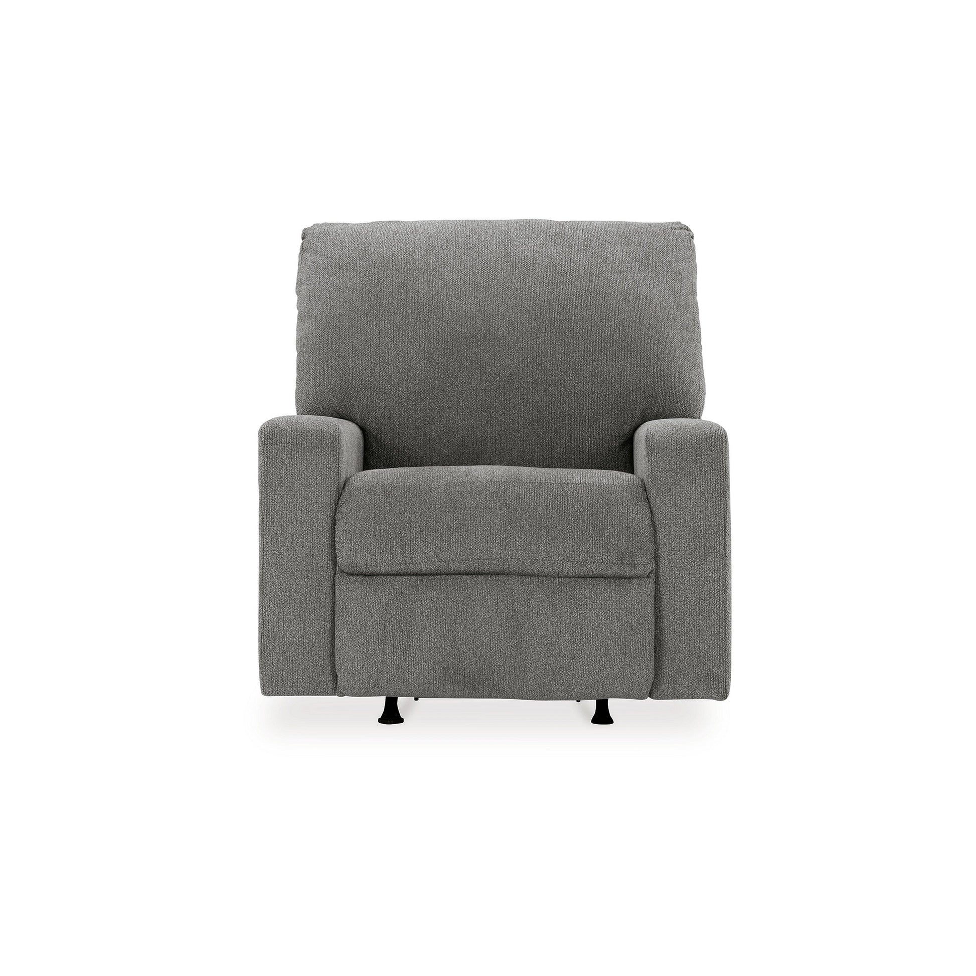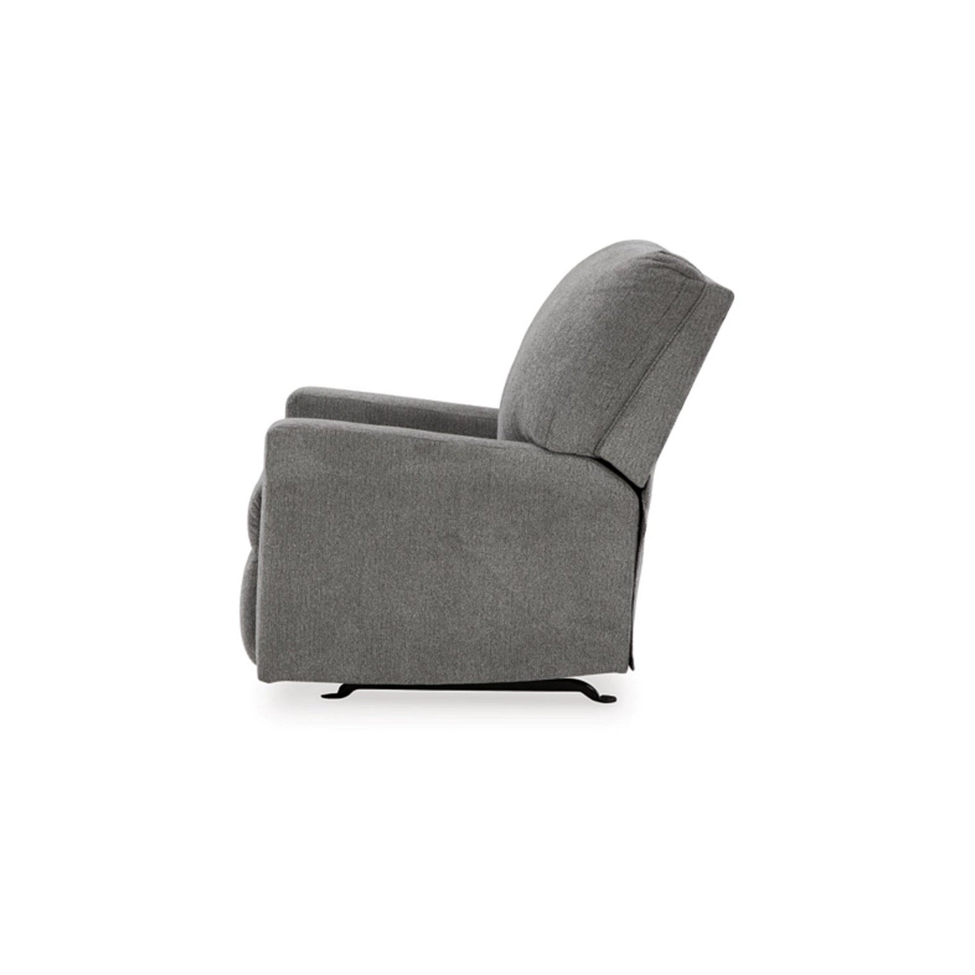 Offrez-vous le confort de ce fauteuil à bascule inclinable. Son élégant coloris gris graphite s'harmonise avec son design contemporain, tandis que son revêtement en polyester doux apporte une touche de texture. De plus, l'inclinaison est facilitée par un bouton latéral, vous permettant d'adopter une position relaxante d'une simple pression. Découvrez notre collection Gavin pour plus d'options.