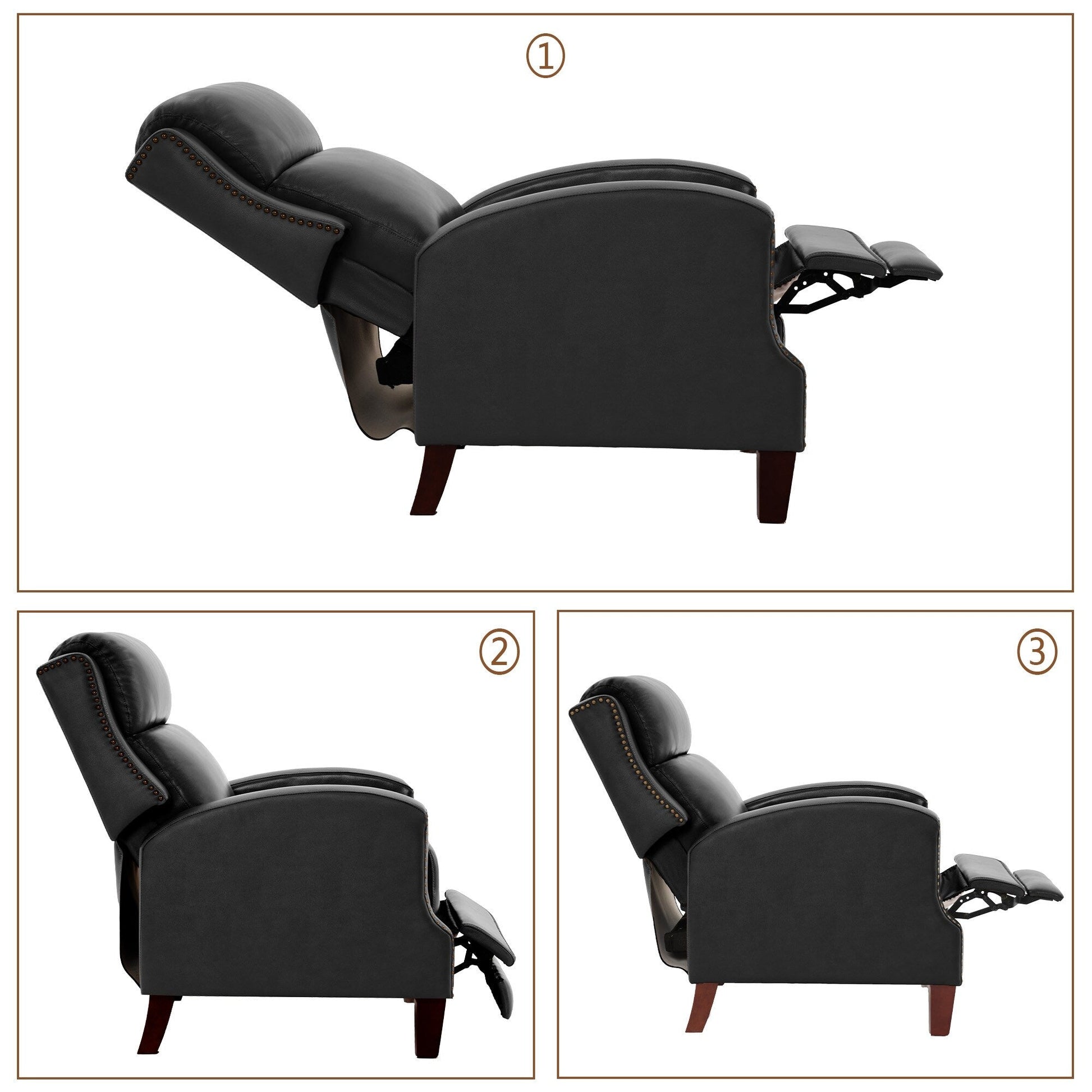 Fauteuil inclinable en cuir véritable avec dossier multi-angles et pieds en bois massif