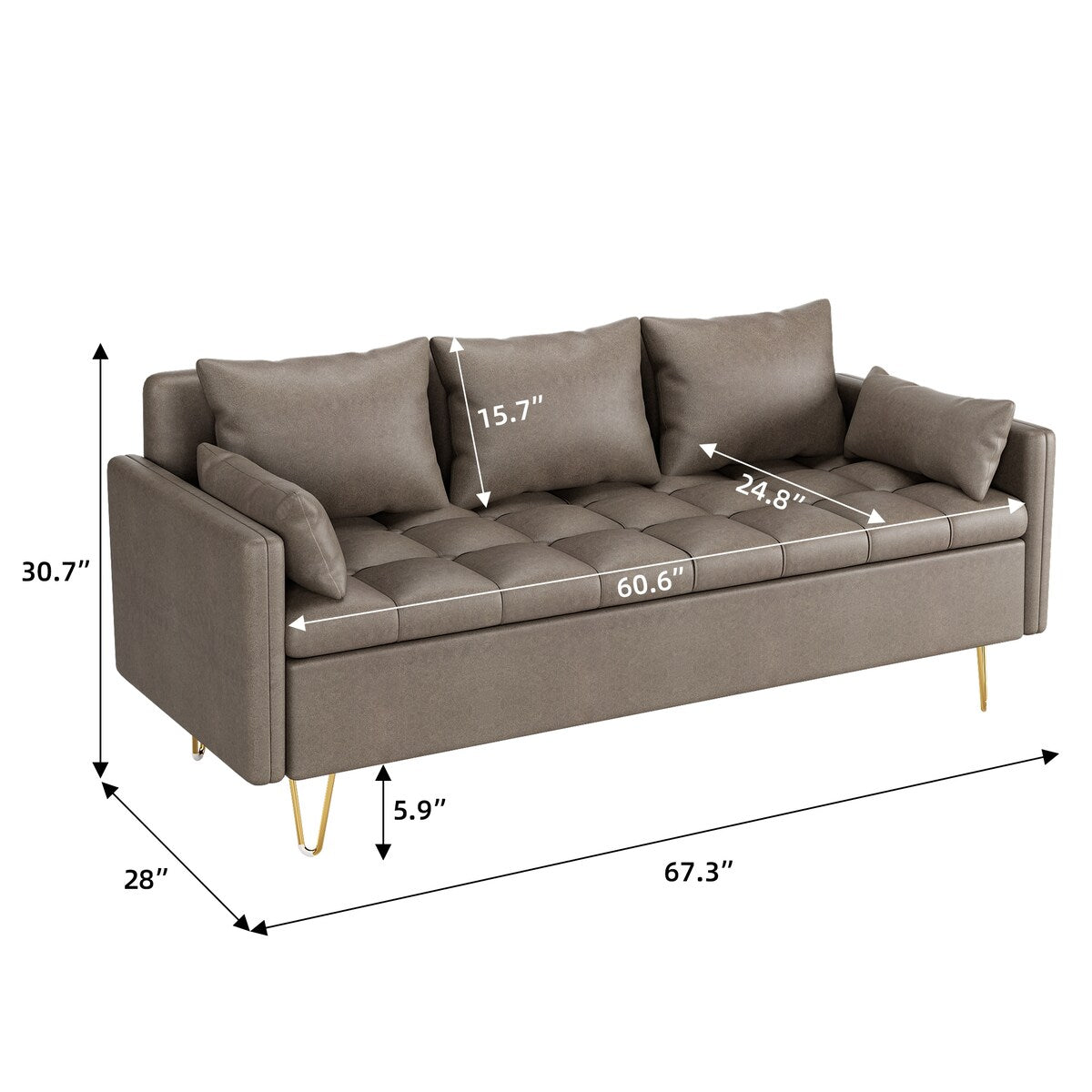 Canapé 3 places en cuir GIMMYFIVE avec coussin, canapé pour salon