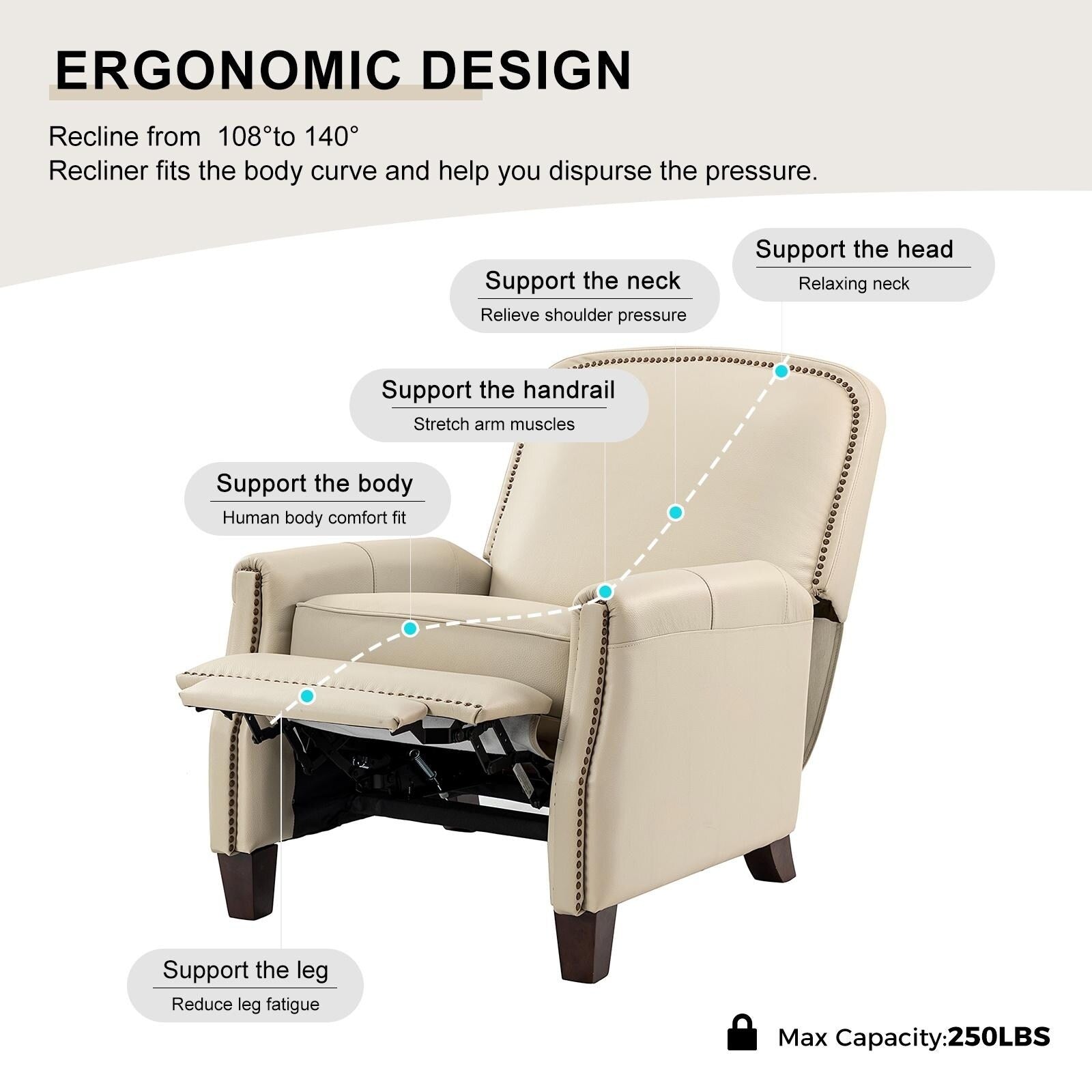 - Garniture de tête de clou : la garniture de tête de clou magnifiquement conçue ajoute une touche élégante et stylée au design du fauteuil inclinable.