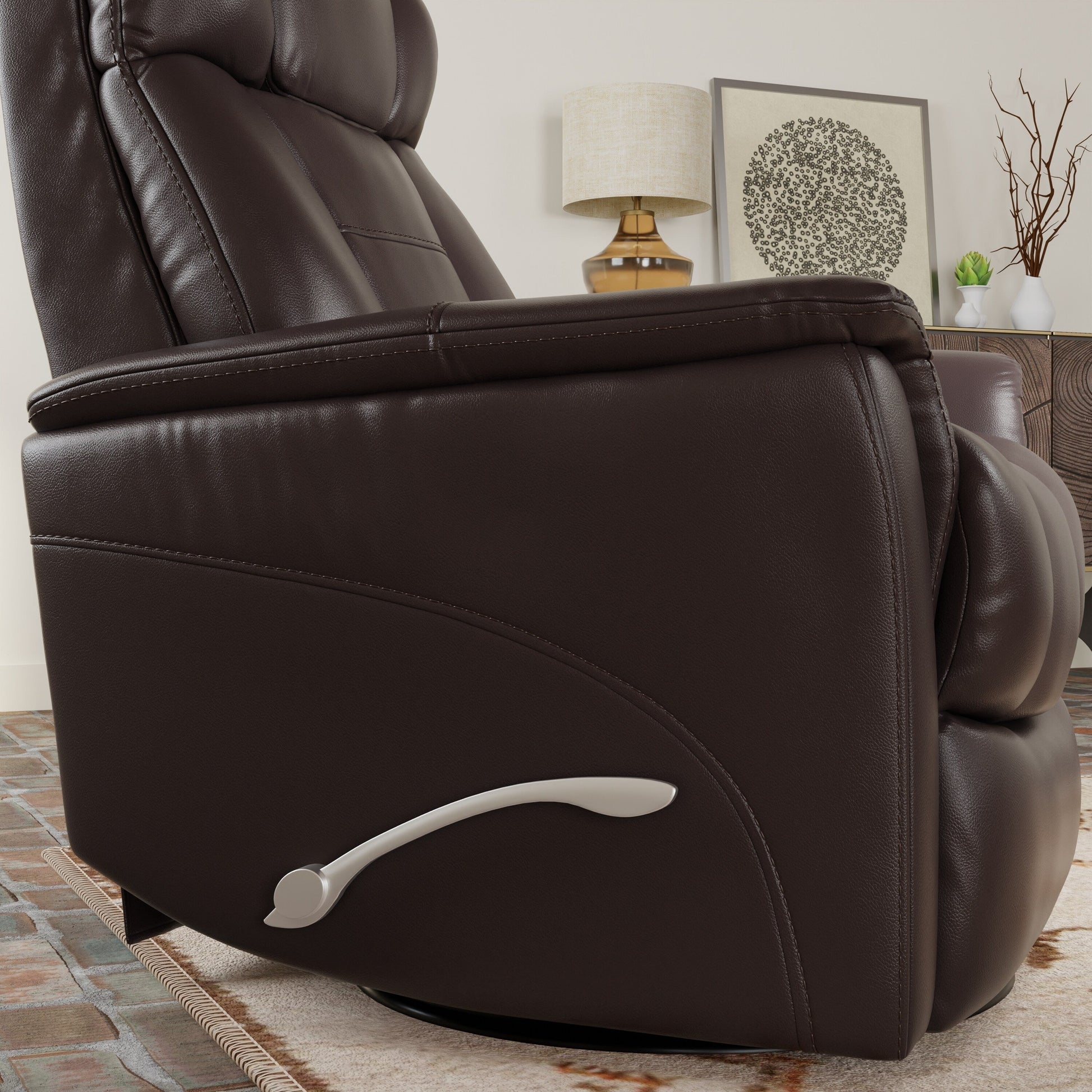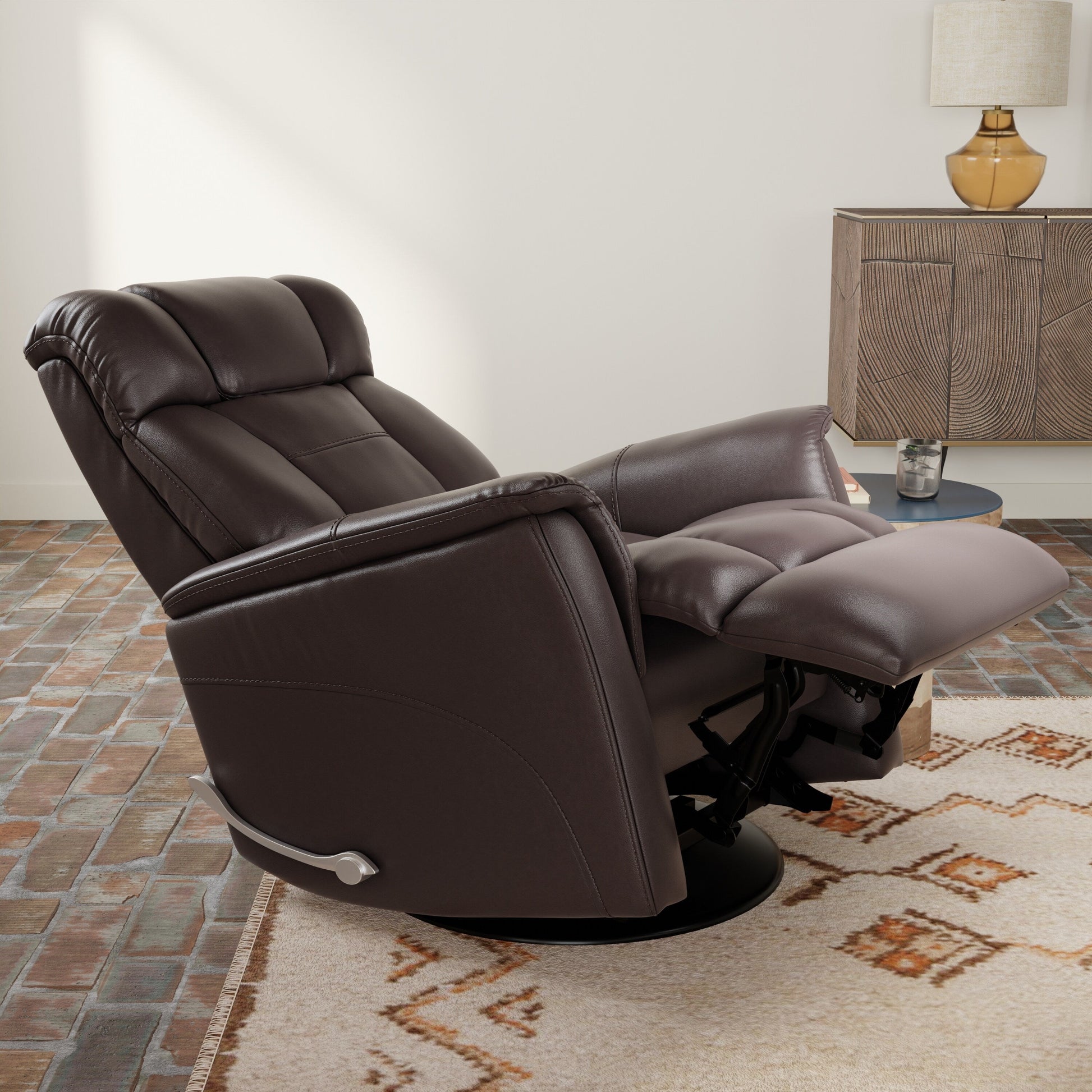 Fauteuil inclinable pivotant Global Home avec appui-tête et repose-pieds réglables manuellement en similicuir Bentley