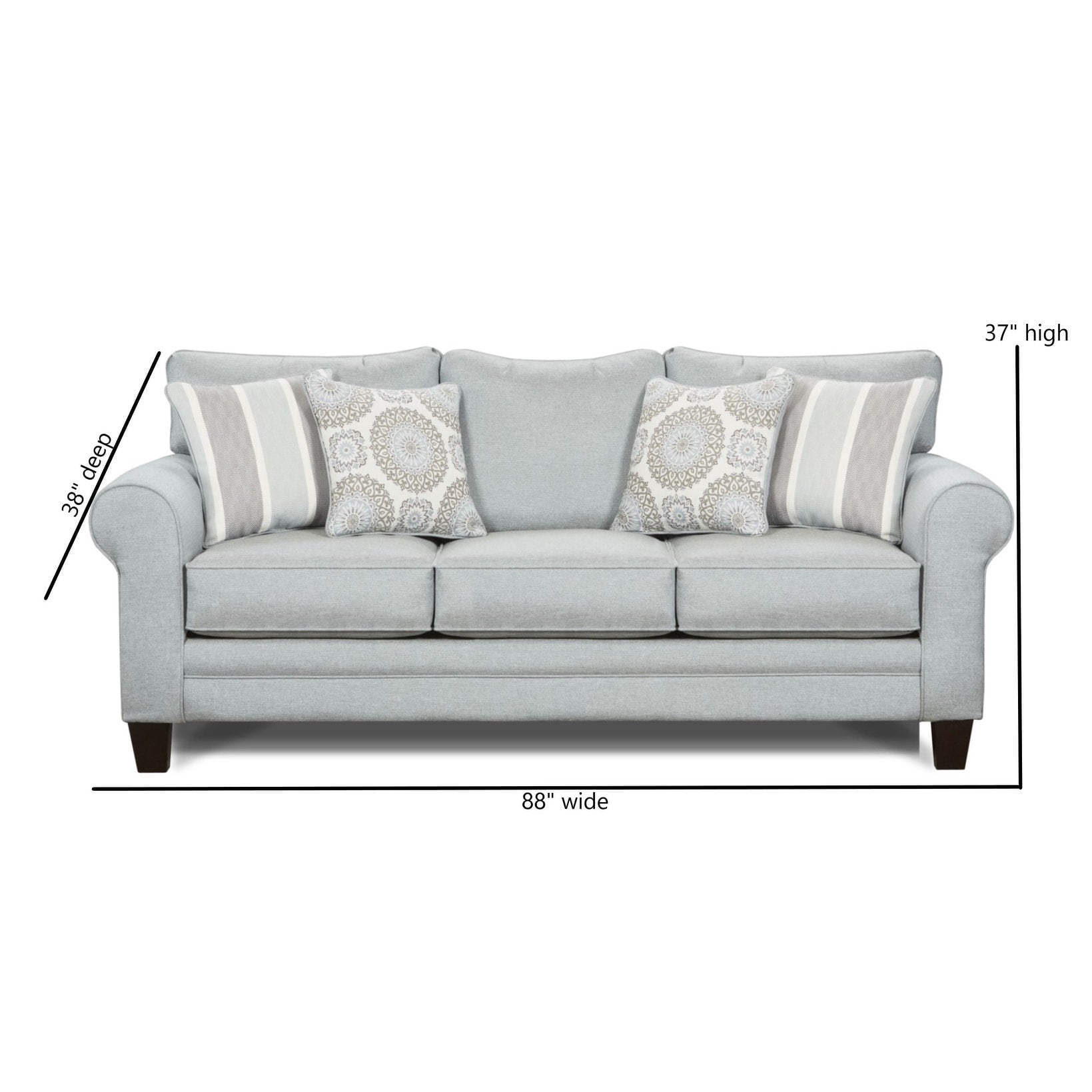 Sublimez votre salon avec ce charmant canapé transitionnel Grande Mist bleu clair/gris à accoudoirs ronds. Avec son revêtement en polypropylène et ses coussins semi-fermes, ce canapé peut accueillir confortablement jusqu'à trois personnes. Les coussins réversibles facilitent l'entretien et prolongent la durée de vie du canapé. Ses élégants accoudoirs ronds et son style transitionnel ajoutent une touche de sophistication à tout décor.