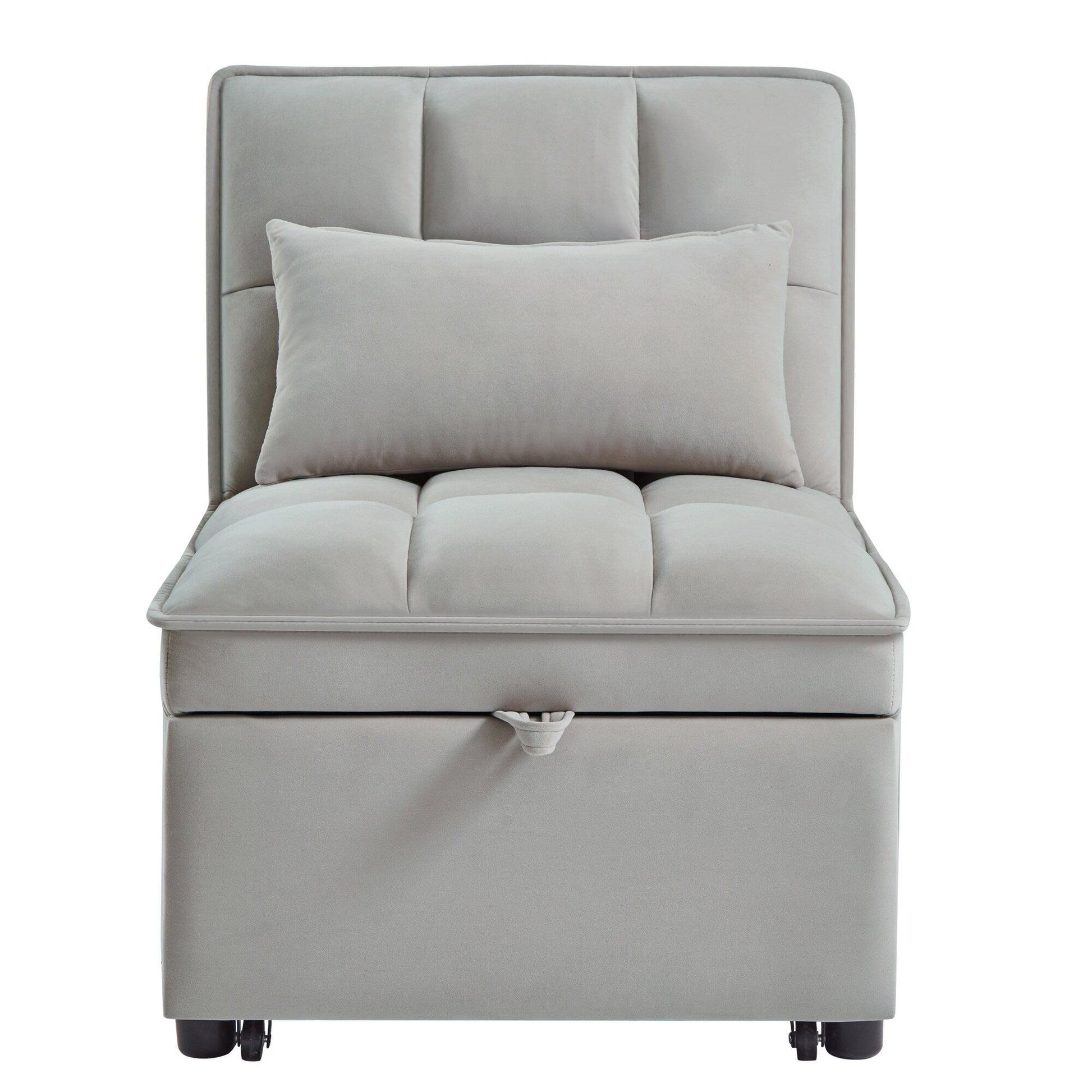 Canapé-lit simple pliant en velours gris 68,5 avec dossier réglable et oreillers pour le salon