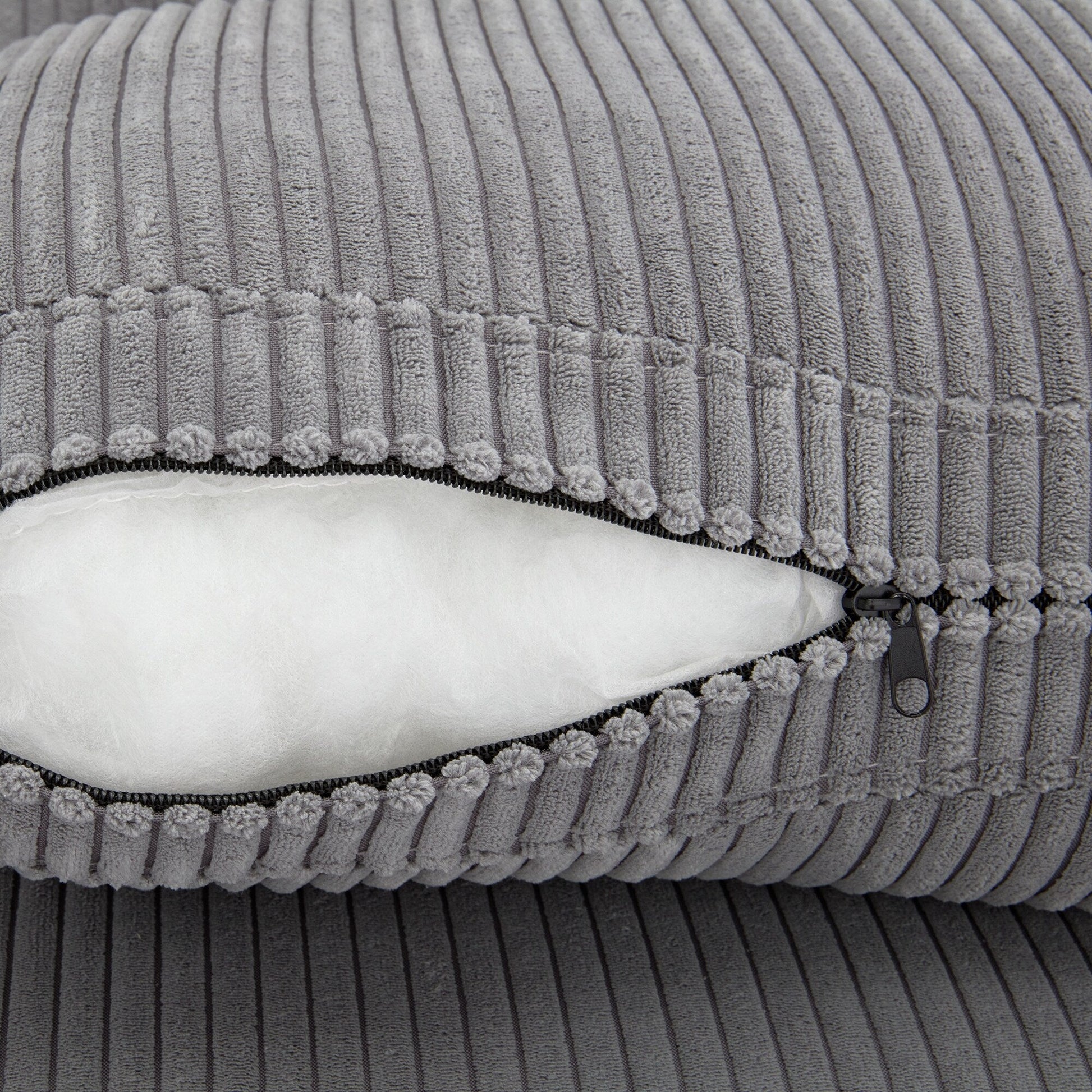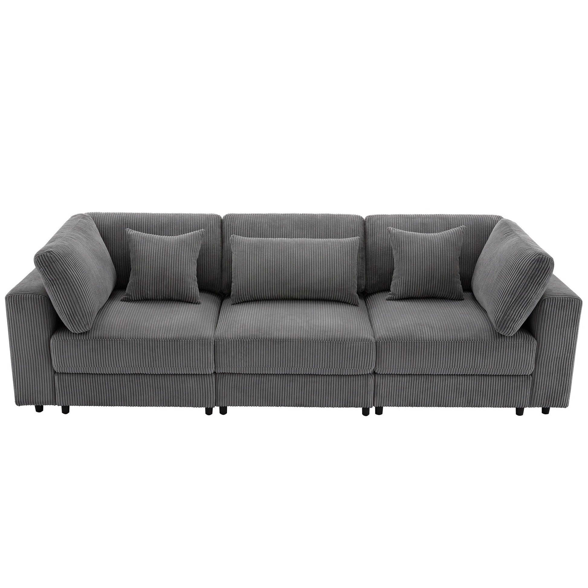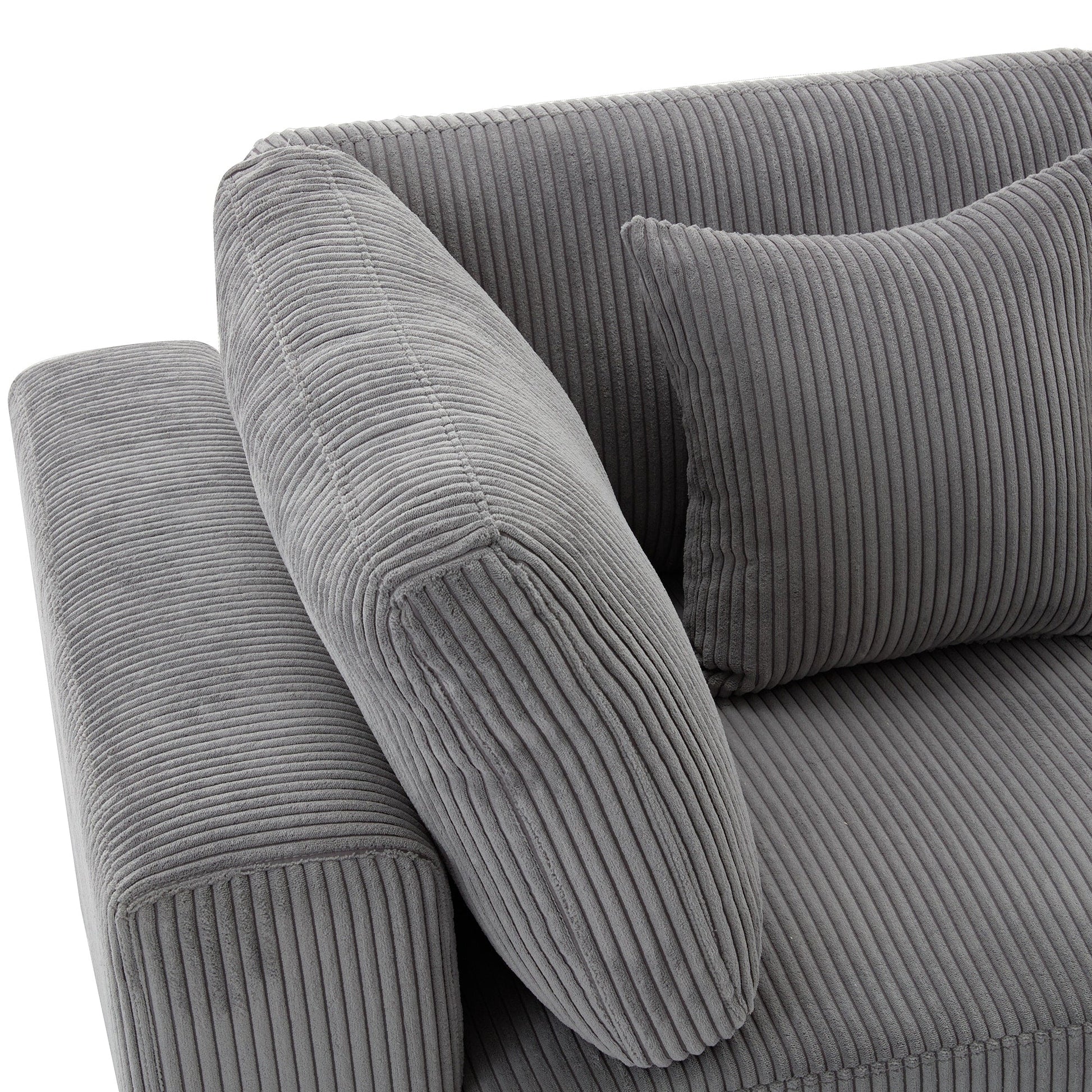 Canapé 3 places rembourré en velours côtelé gris avec coussins amovibles