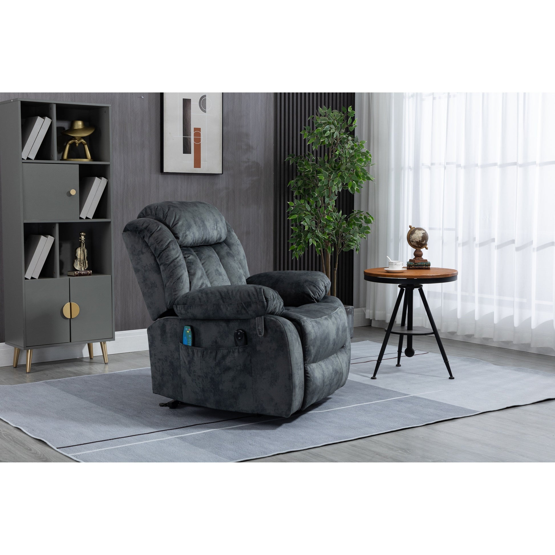 Fauteuil inclinable électrique surdimensionné en velours gris avec massage, chauffage lombaire, 2 poches latérales et port USB