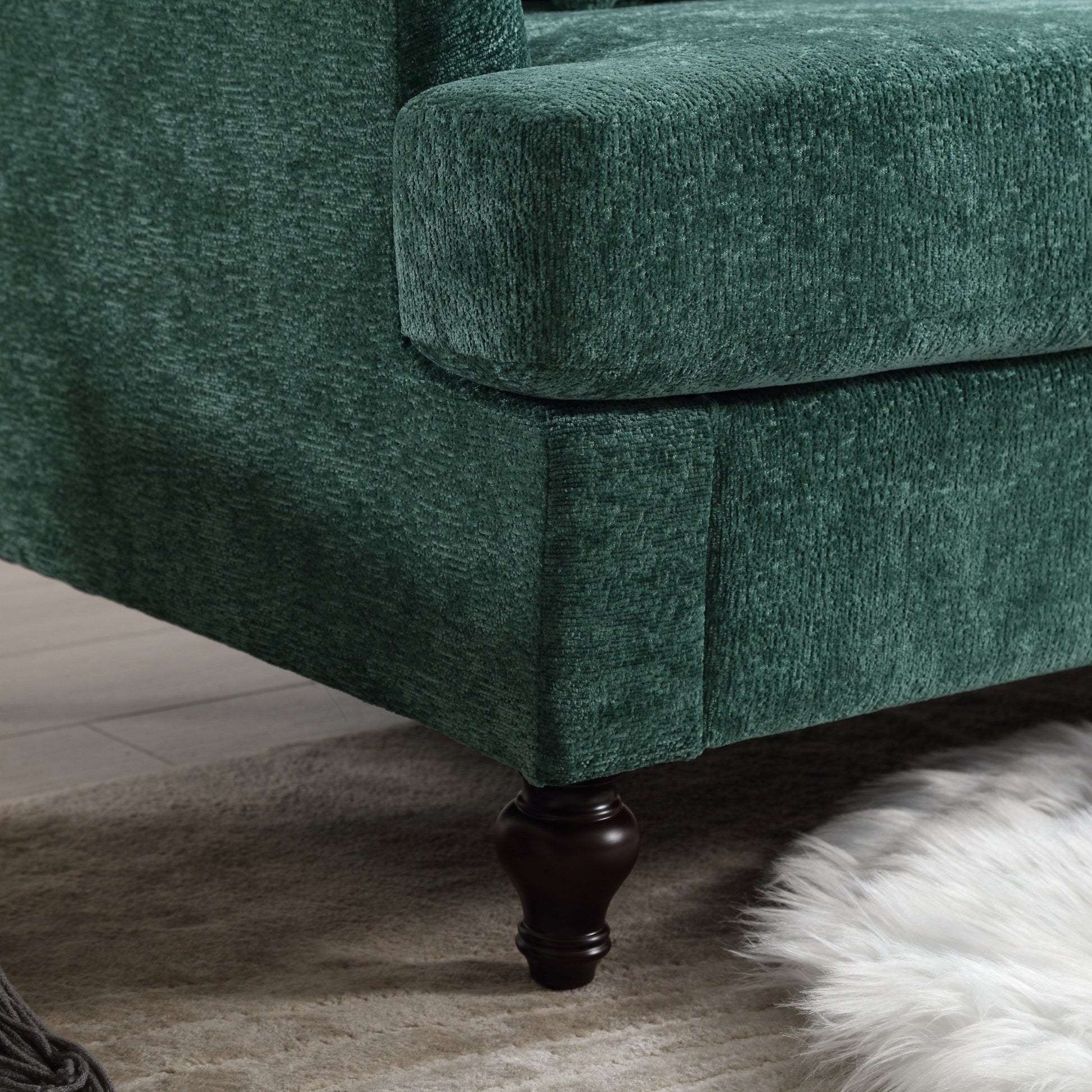 Canapé 2 places vert en chenille de 68,9 po avec coussins amovibles et pieds en bois
