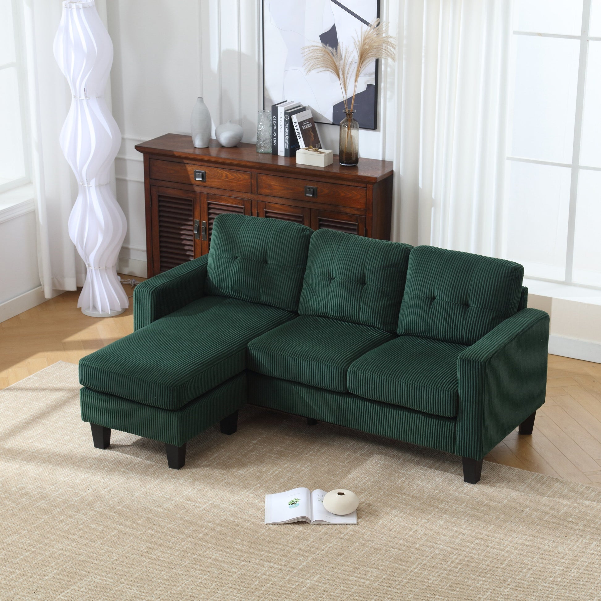 Canapé en L en velours vert 73,62 pouces avec méridienne réversible