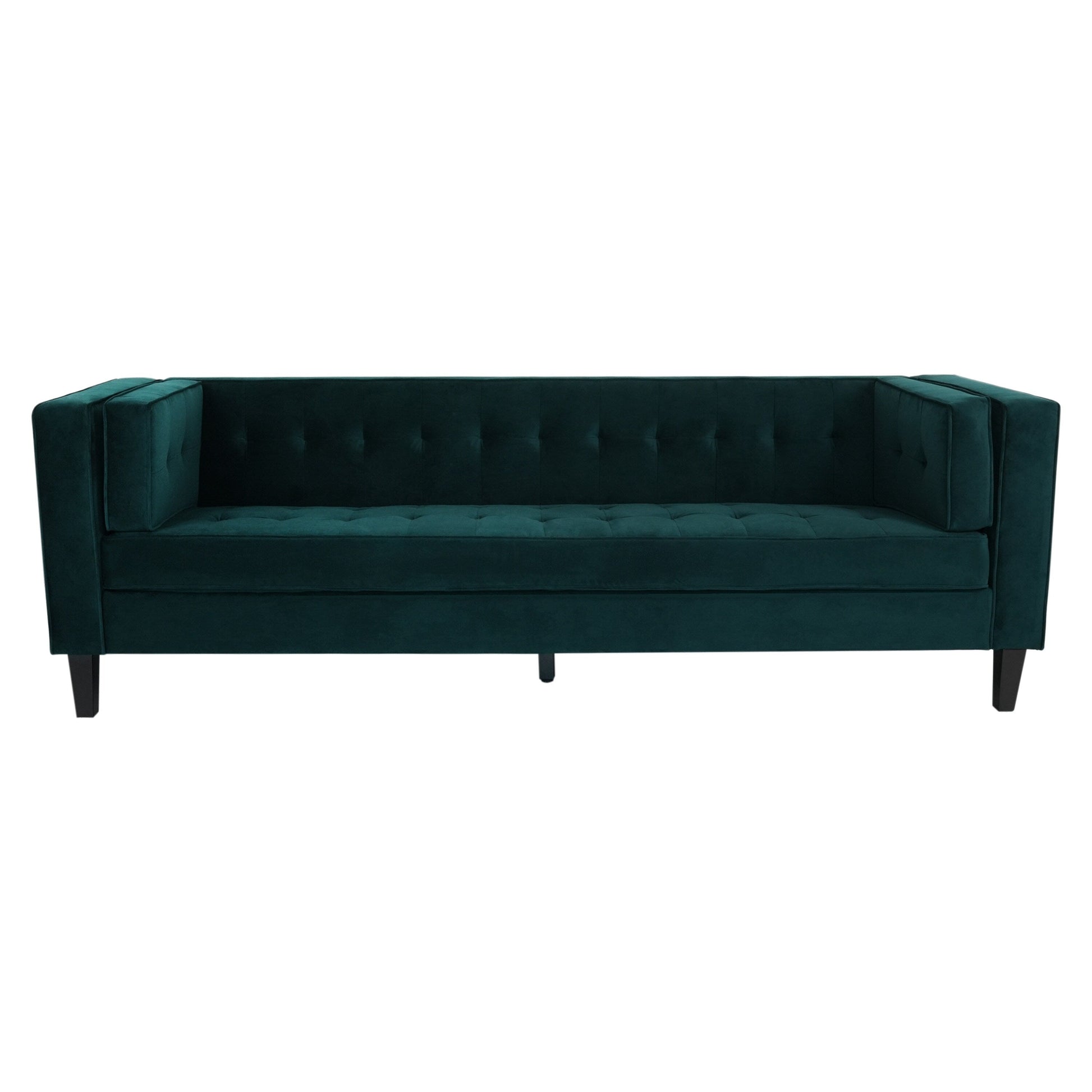 Canapé 3 places vert capitonné en velours de 227 cm, pieds en bois d'eucalyptus massif, coussins en mousse haute densité.