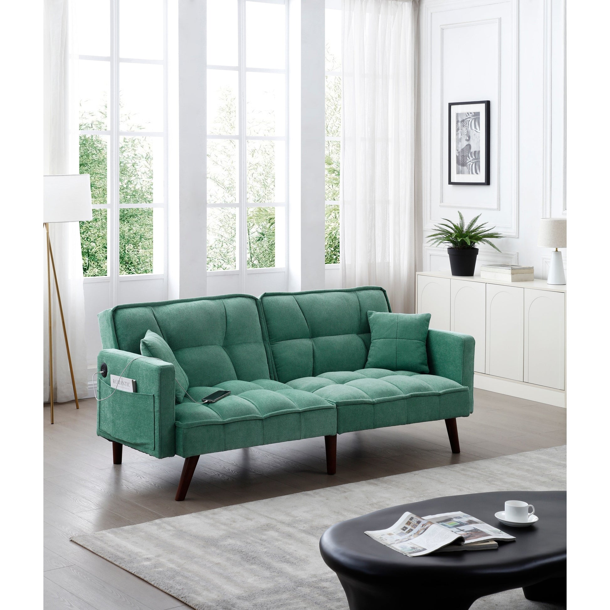 Canapé-lit causeuse en chenille verte avec port de chargement USB