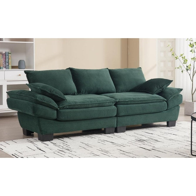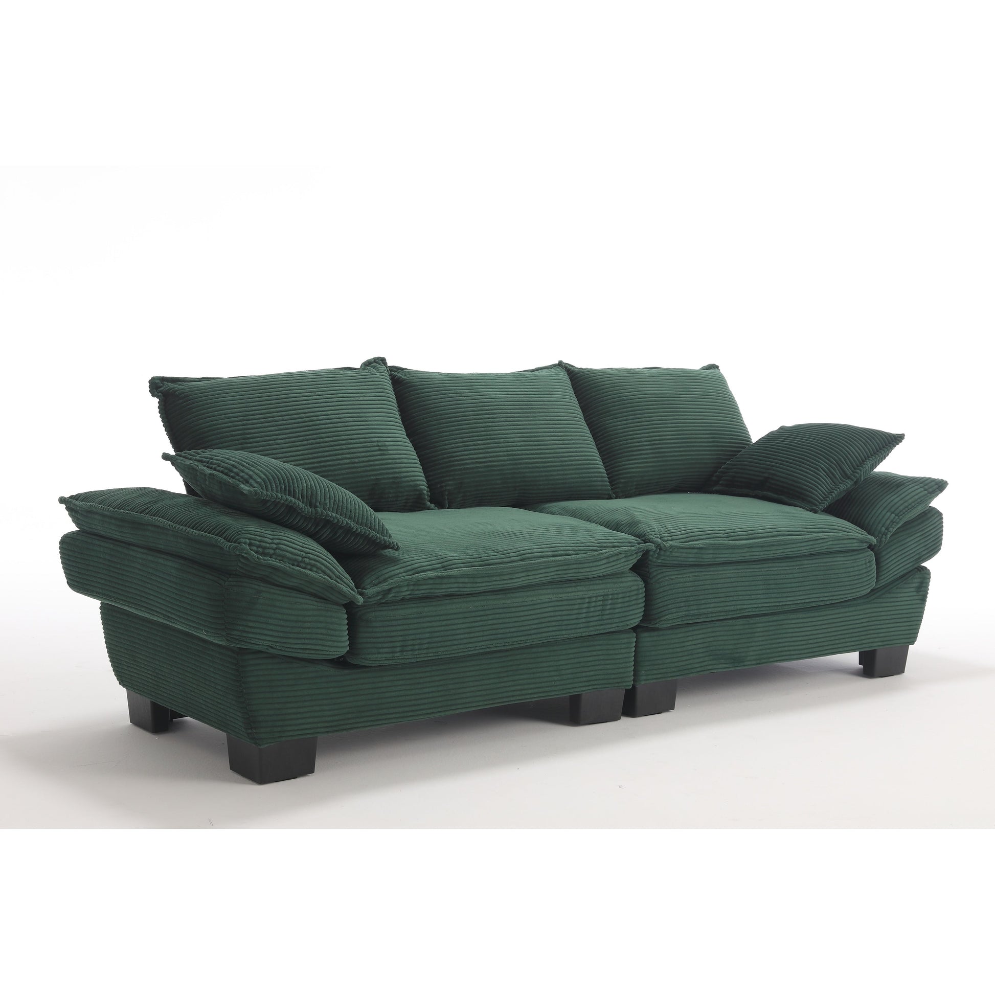 Canapé 3 places en velours côtelé vert moderne 88,6 avec deux coussins et pieds larges en plastique pour le salon