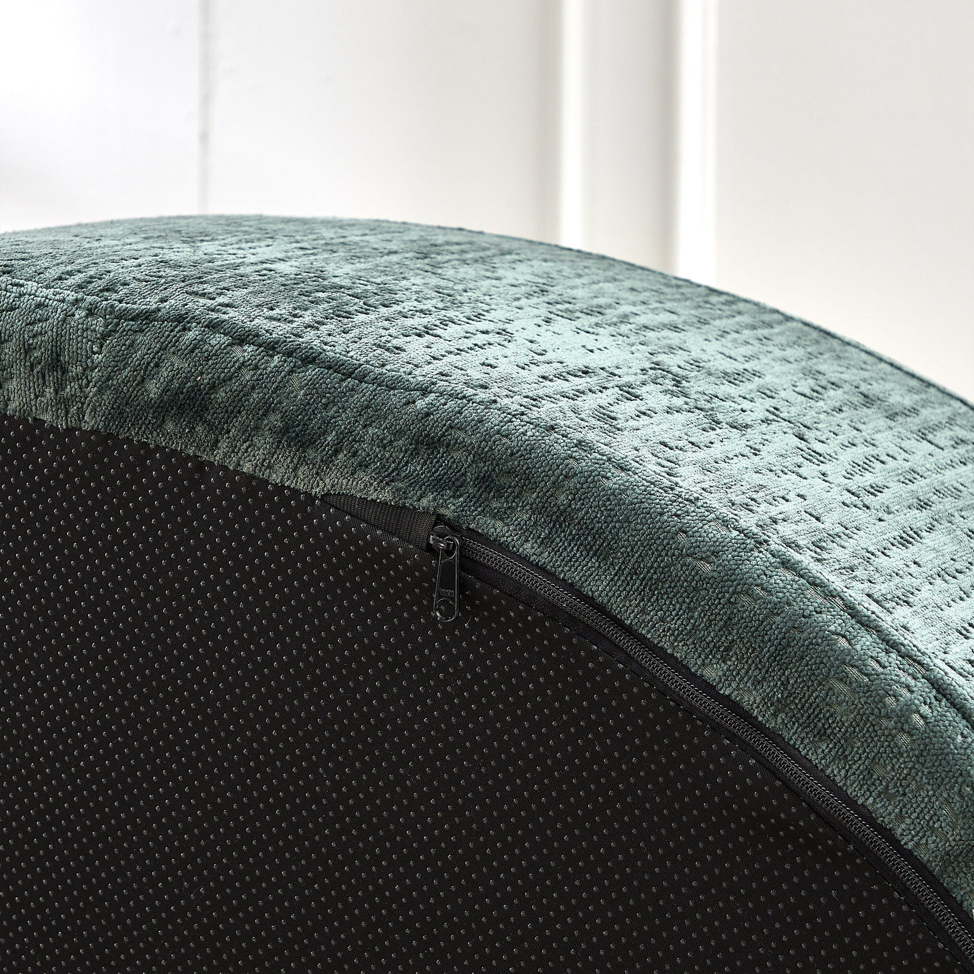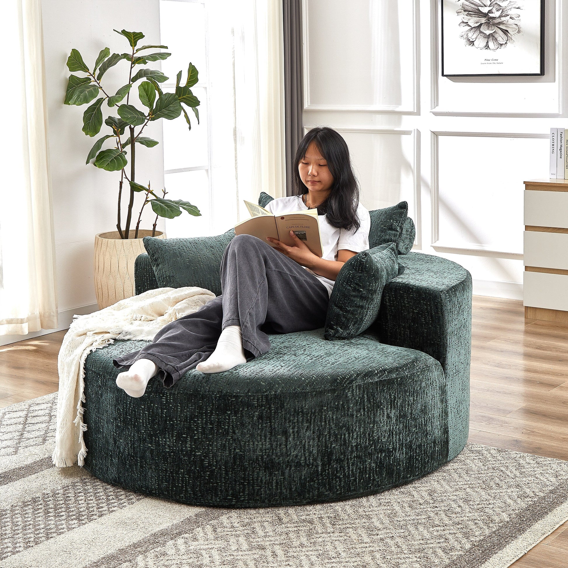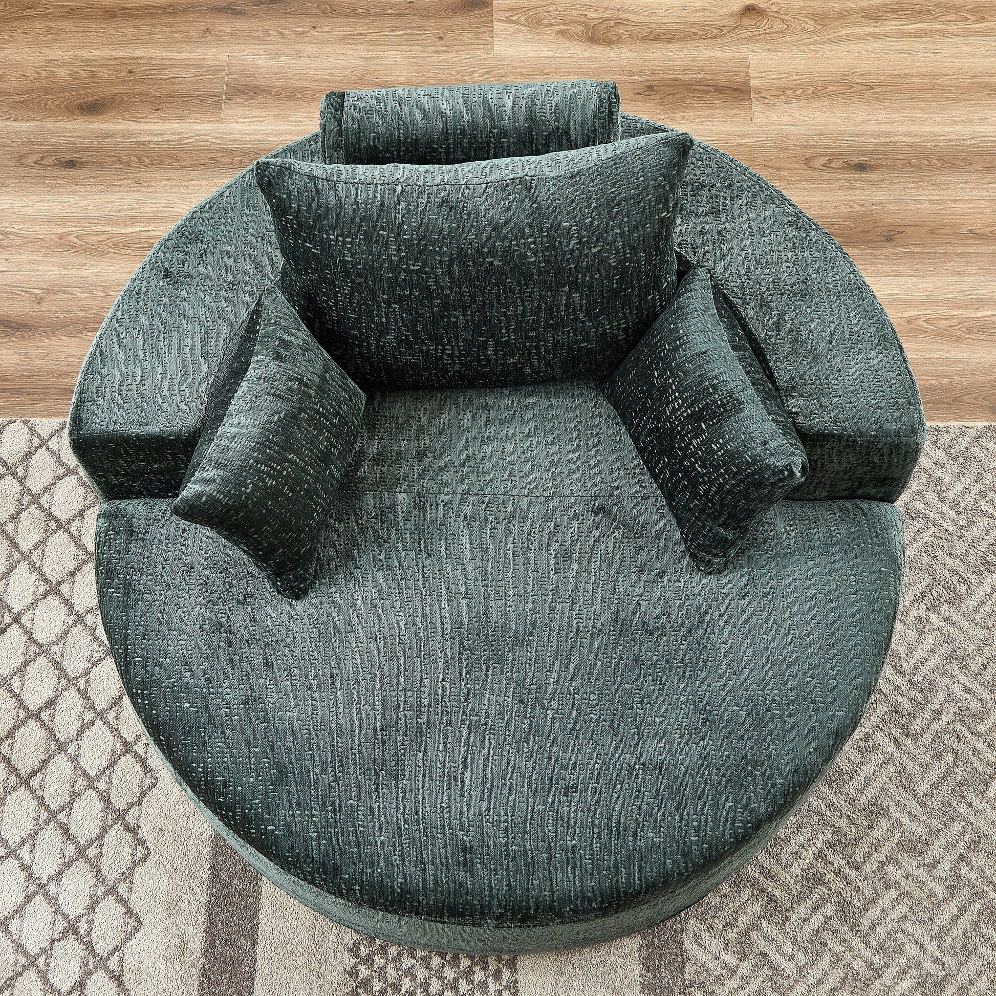 Canapé-lit simple rond en chenille verte avec coussin de dossier