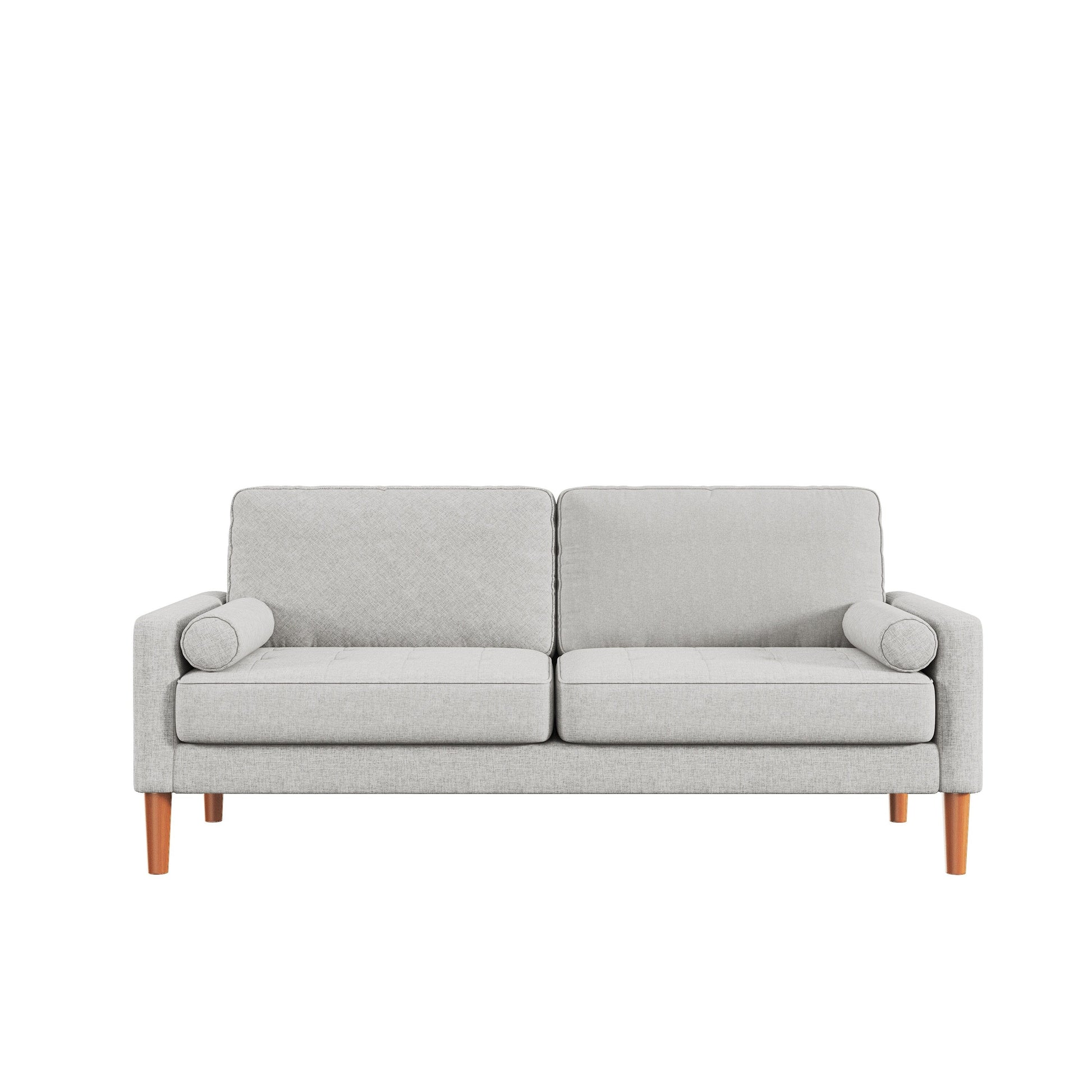 Canapé 3 places rembourré gris 67,7 avec coussins en mousse haute densité, structure en bois massif et assemblage sans outil.