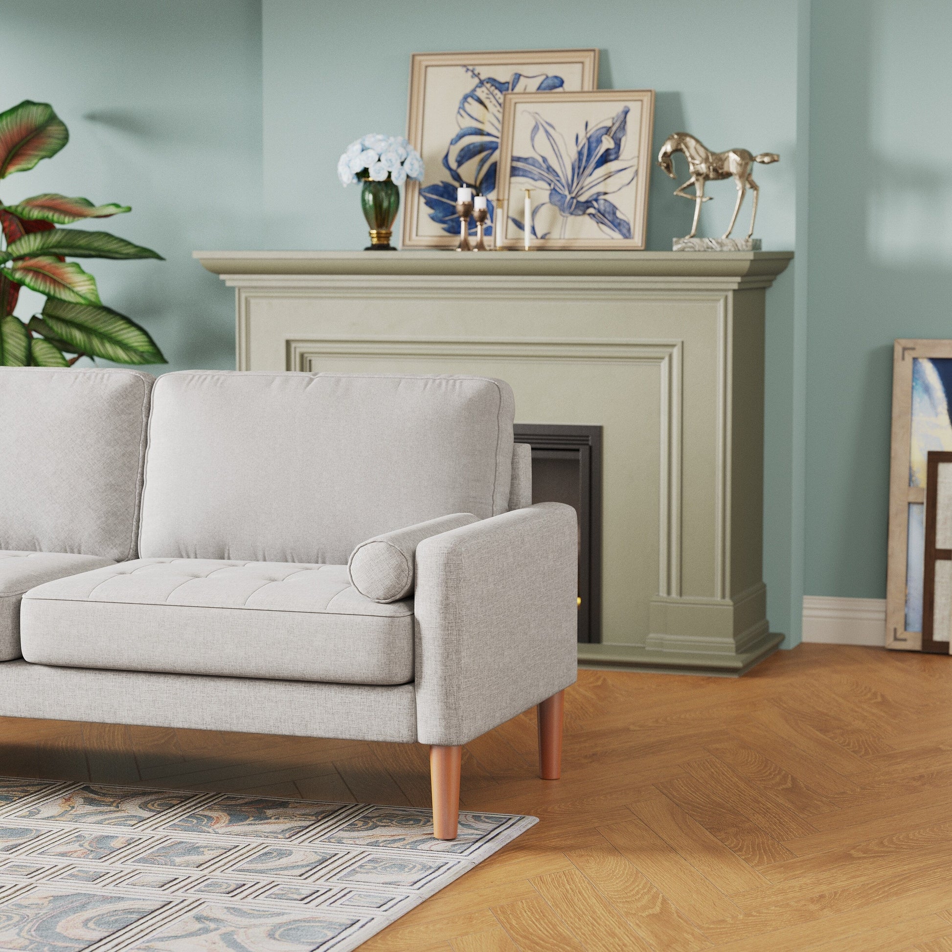 Canapé 3 places rembourré gris de 67,7 pouces avec cadre en bois massif et coussins en mousse haute densité
