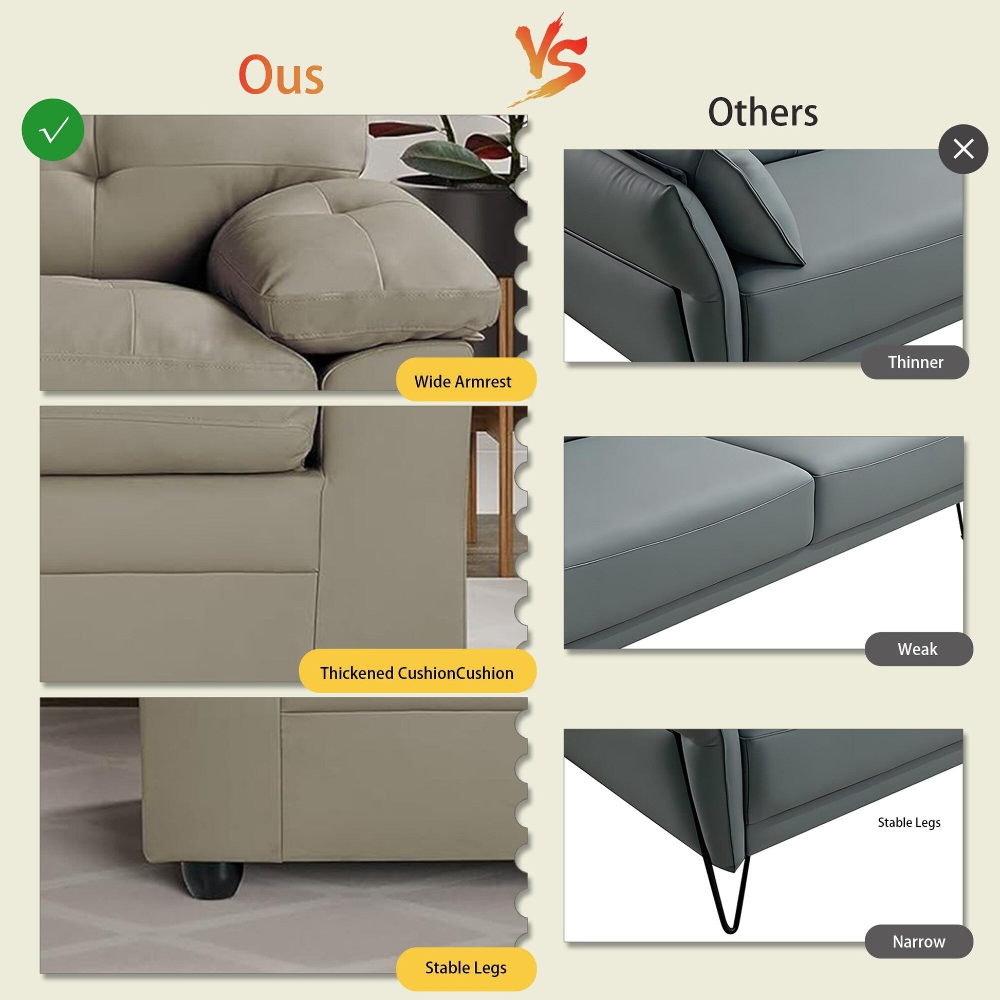 - La causeuse est construite avec un cadre en bois dur séché au four pour assurer robustesse et longévité.