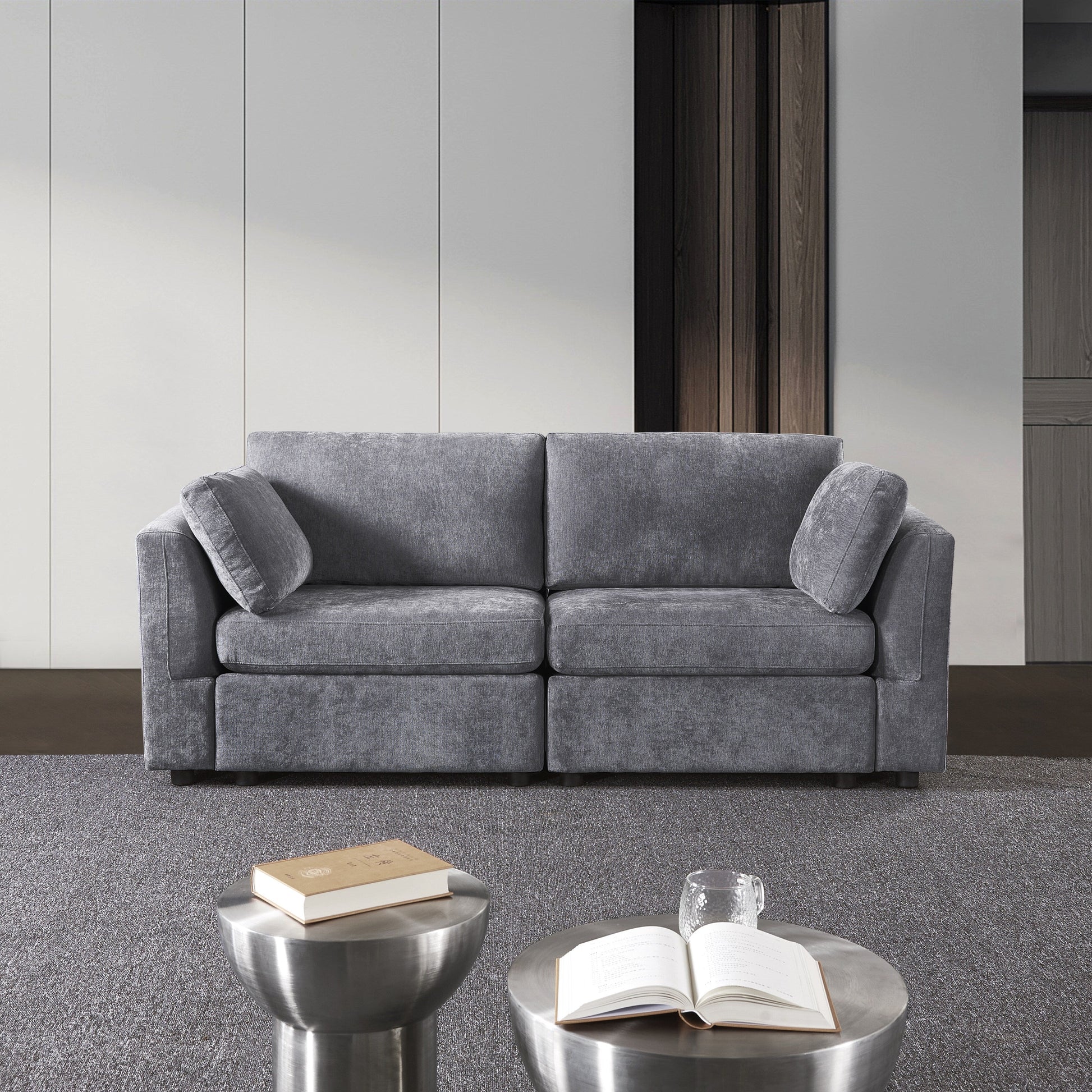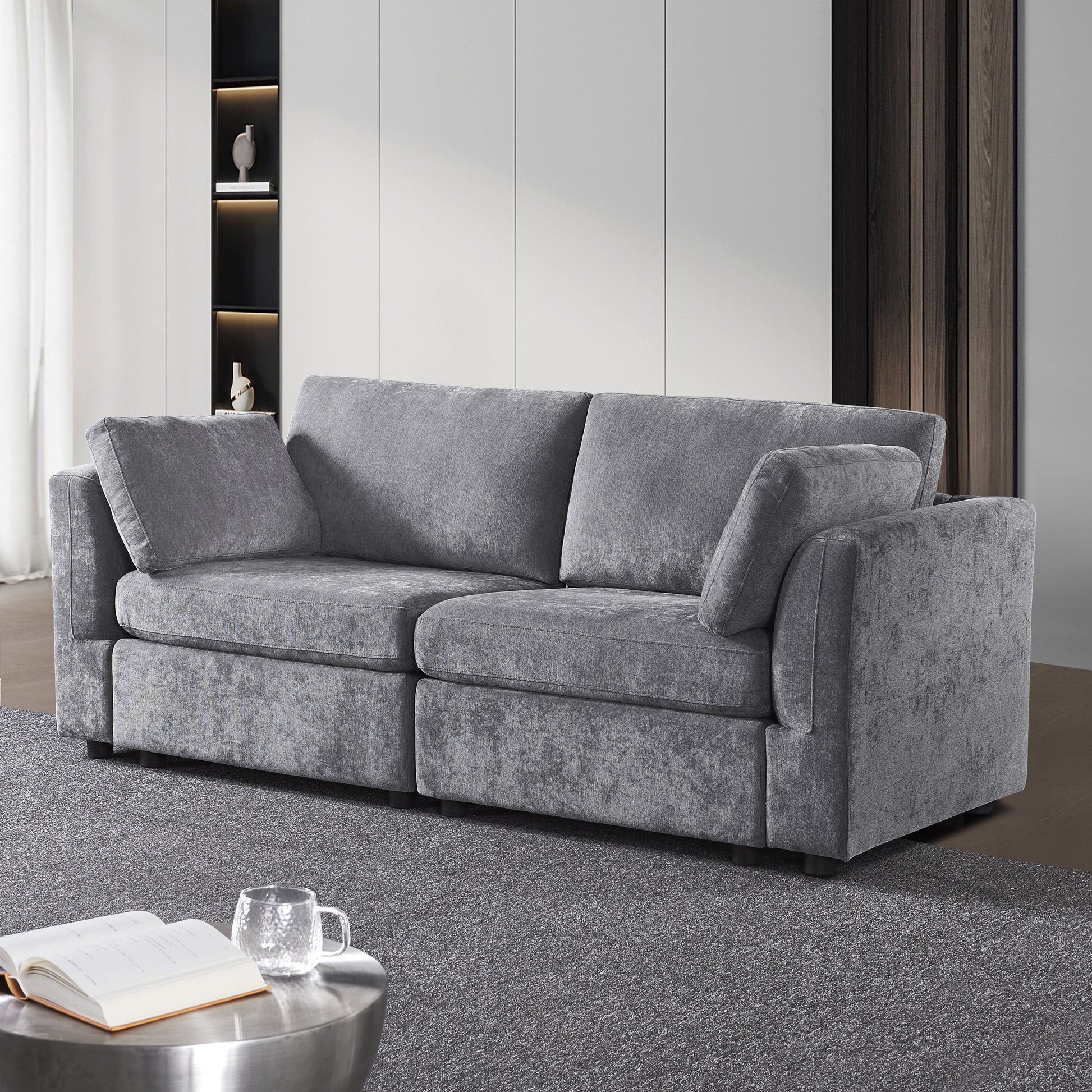 Canapé modulable gris 80,31 en chenille avec cadre en bois massif pour salon