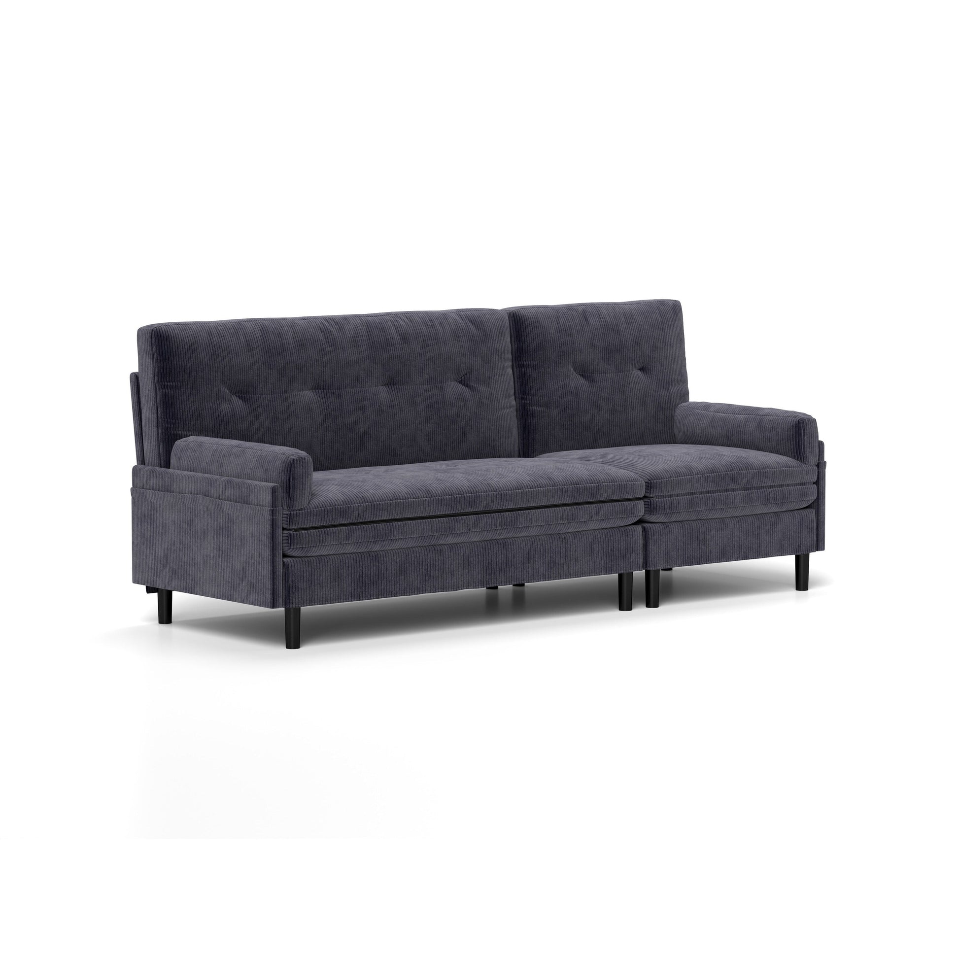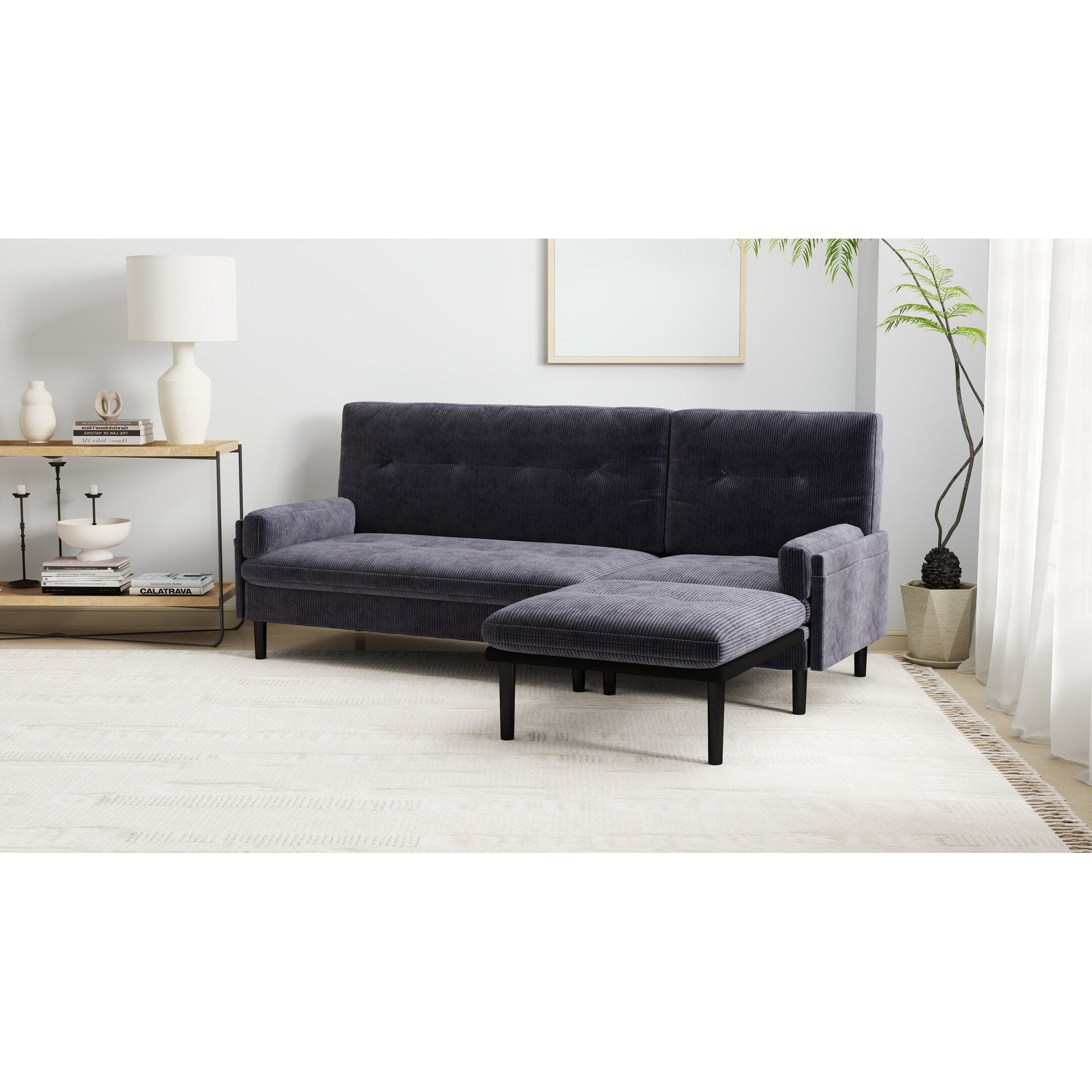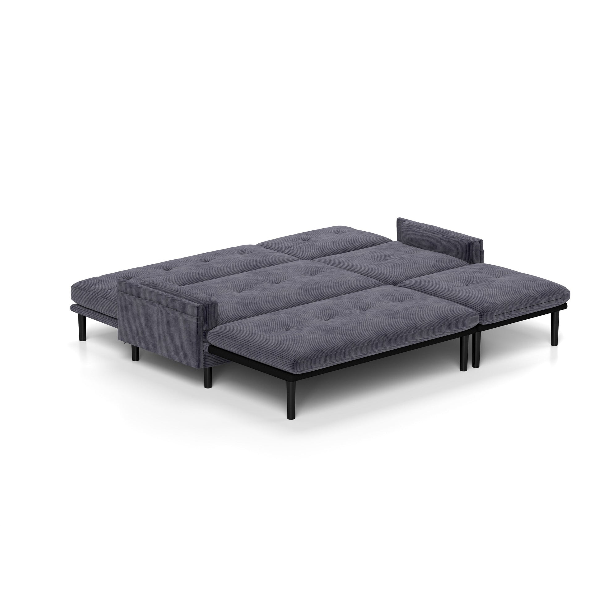 Canapé 3 places multifonctionnel réglable en velours côtelé gris 80.7, convertible en L et lit d'appoint