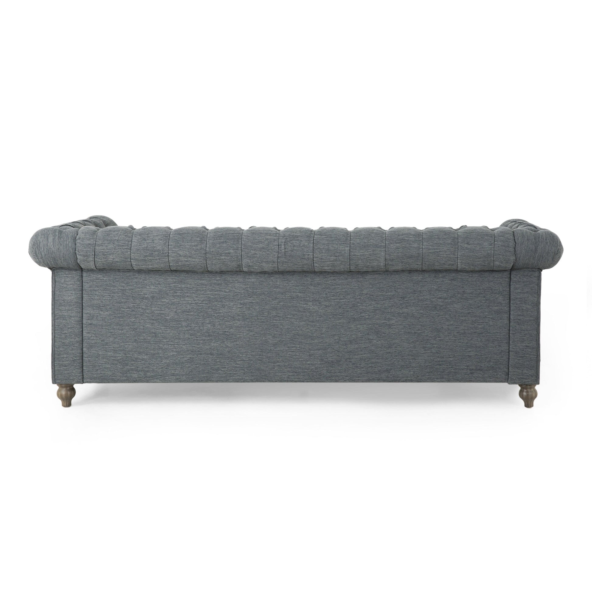 Canapé gris en polyester de 85,5 po avec dossier capitonné et pieds en bois
