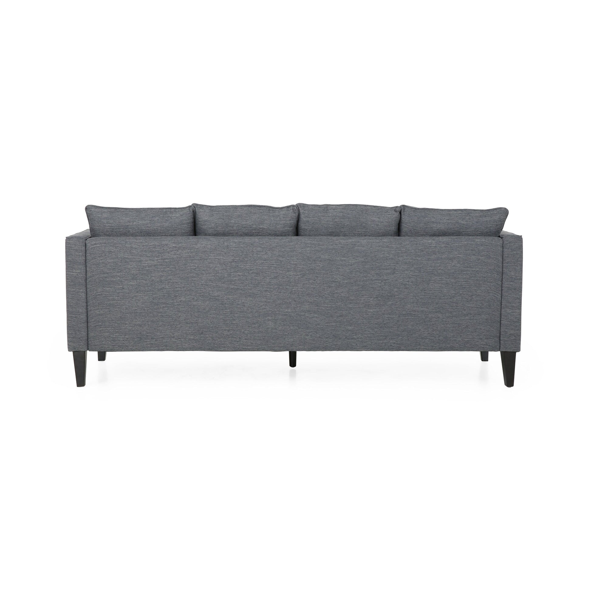 Canapé 3 places gris en tissu polyester de 86 pouces avec pieds en bois massif, dossier capitonné et assise à ressorts ensachés