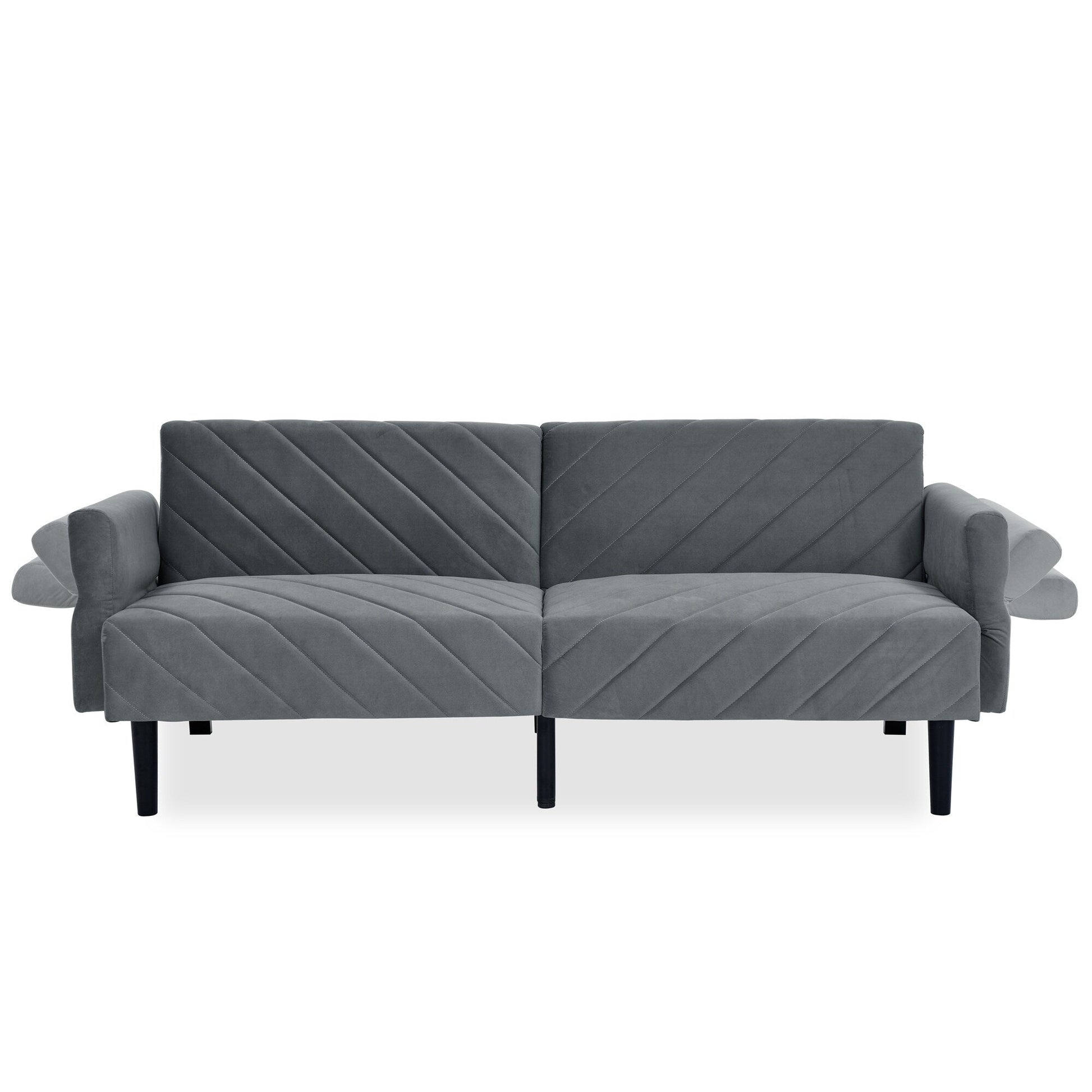 Canapé-lit futon convertible capitonné en velours gris 87 avec accoudoirs réglables pour salon