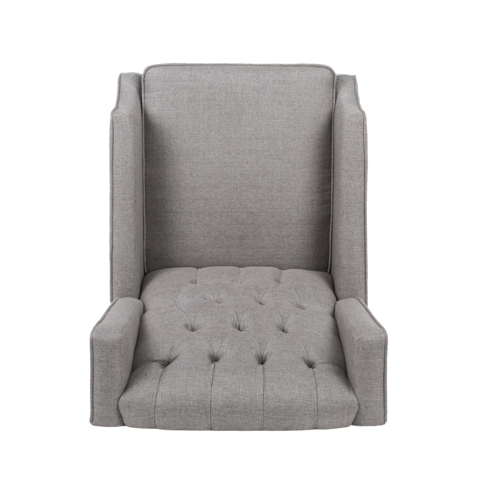 Fauteuil inclinable à oreilles rembourré en tissu gris de style milieu du siècle avec repose-pieds et dossier capitonné
