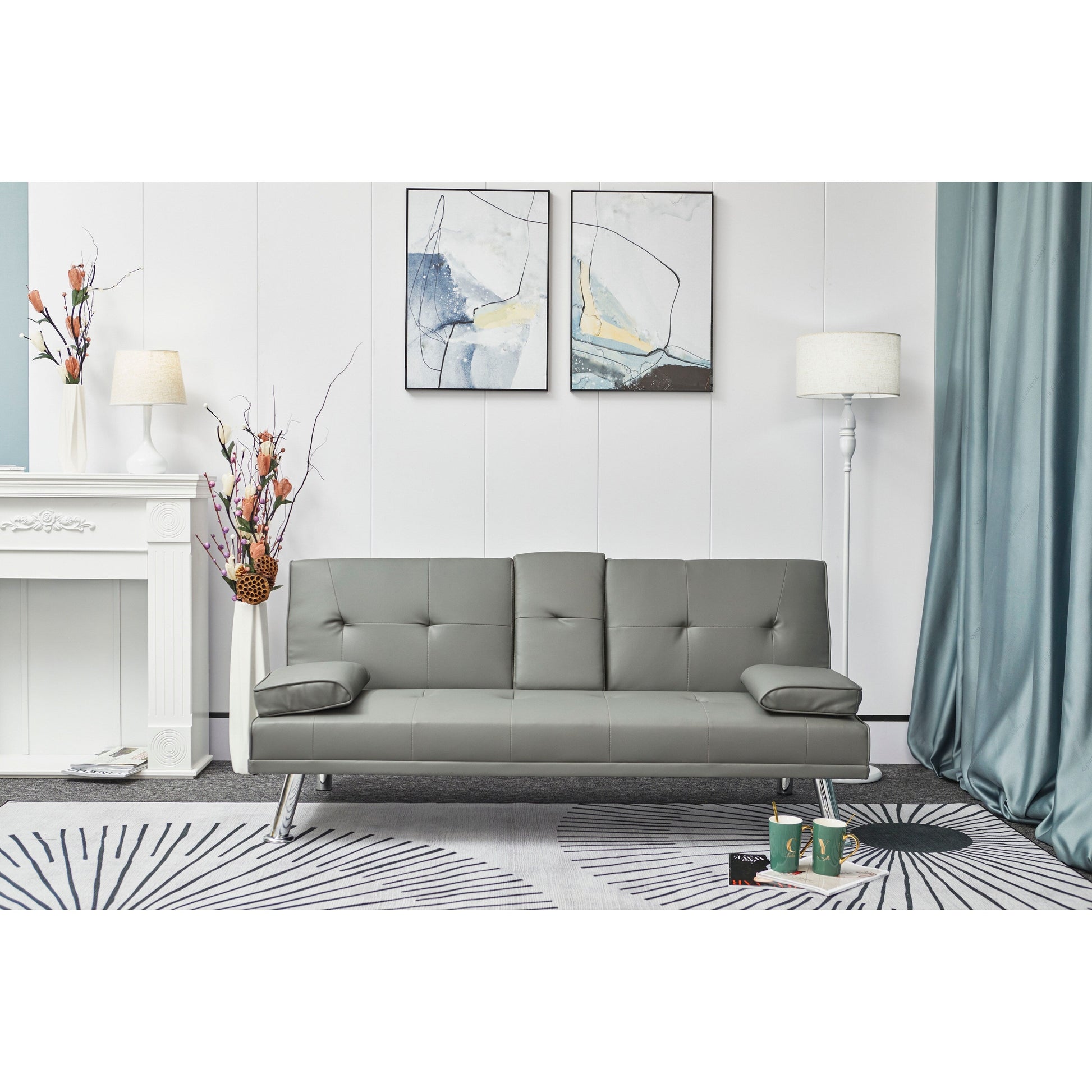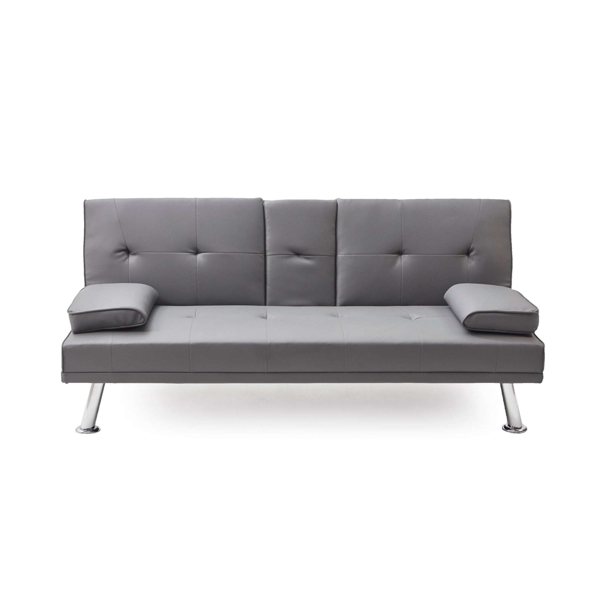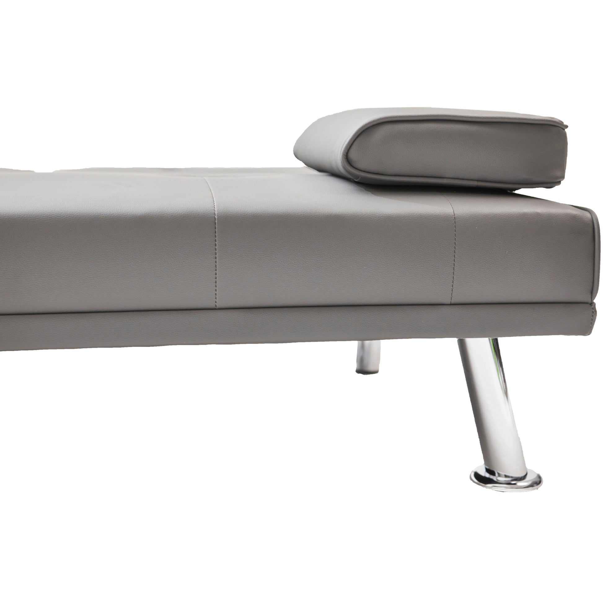 Canapé-lit causeuse en similicuir gris avec porte-gobelet