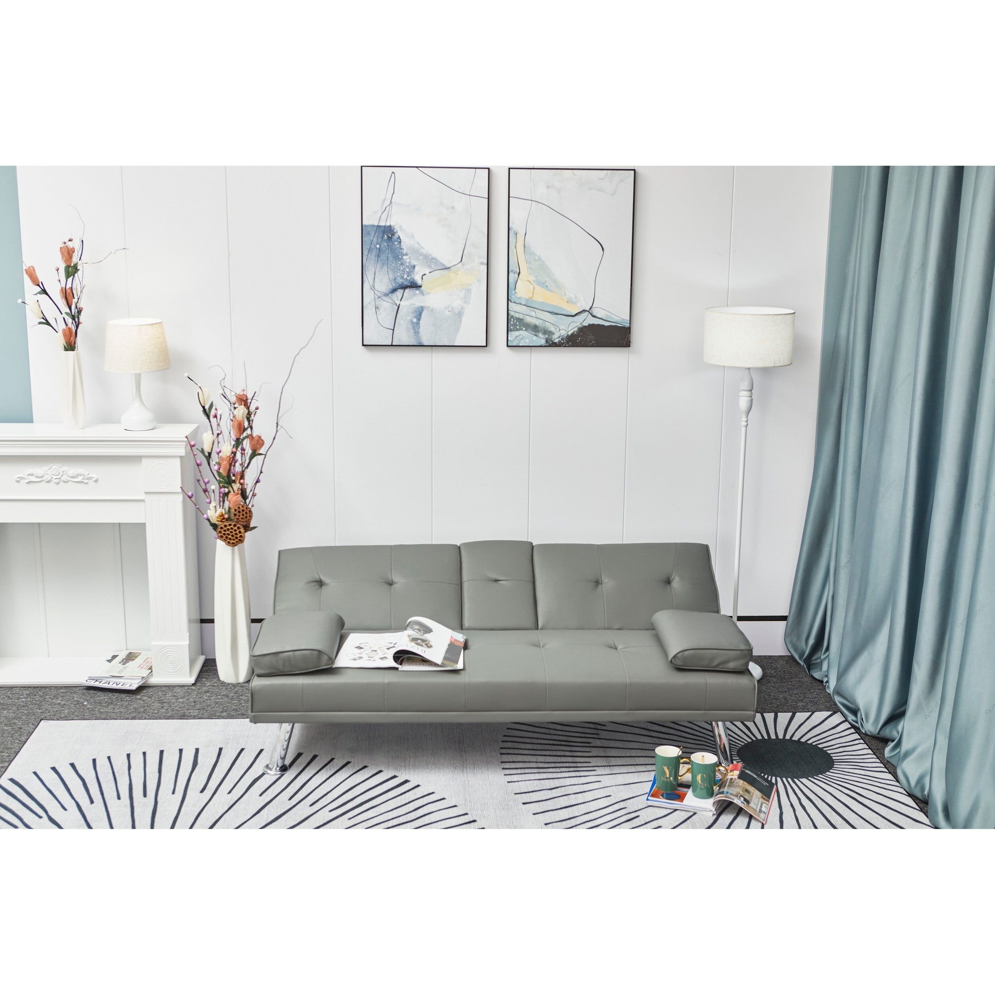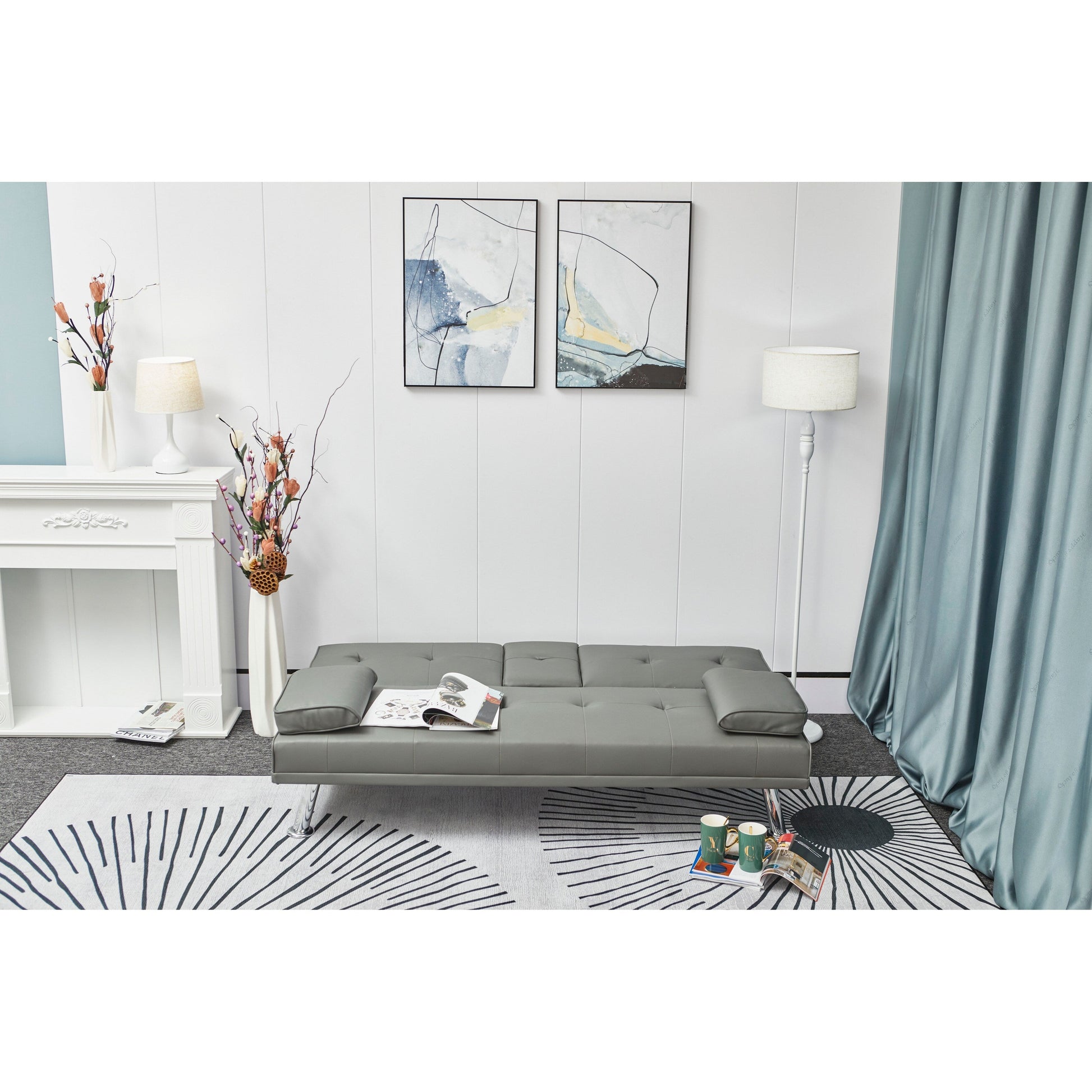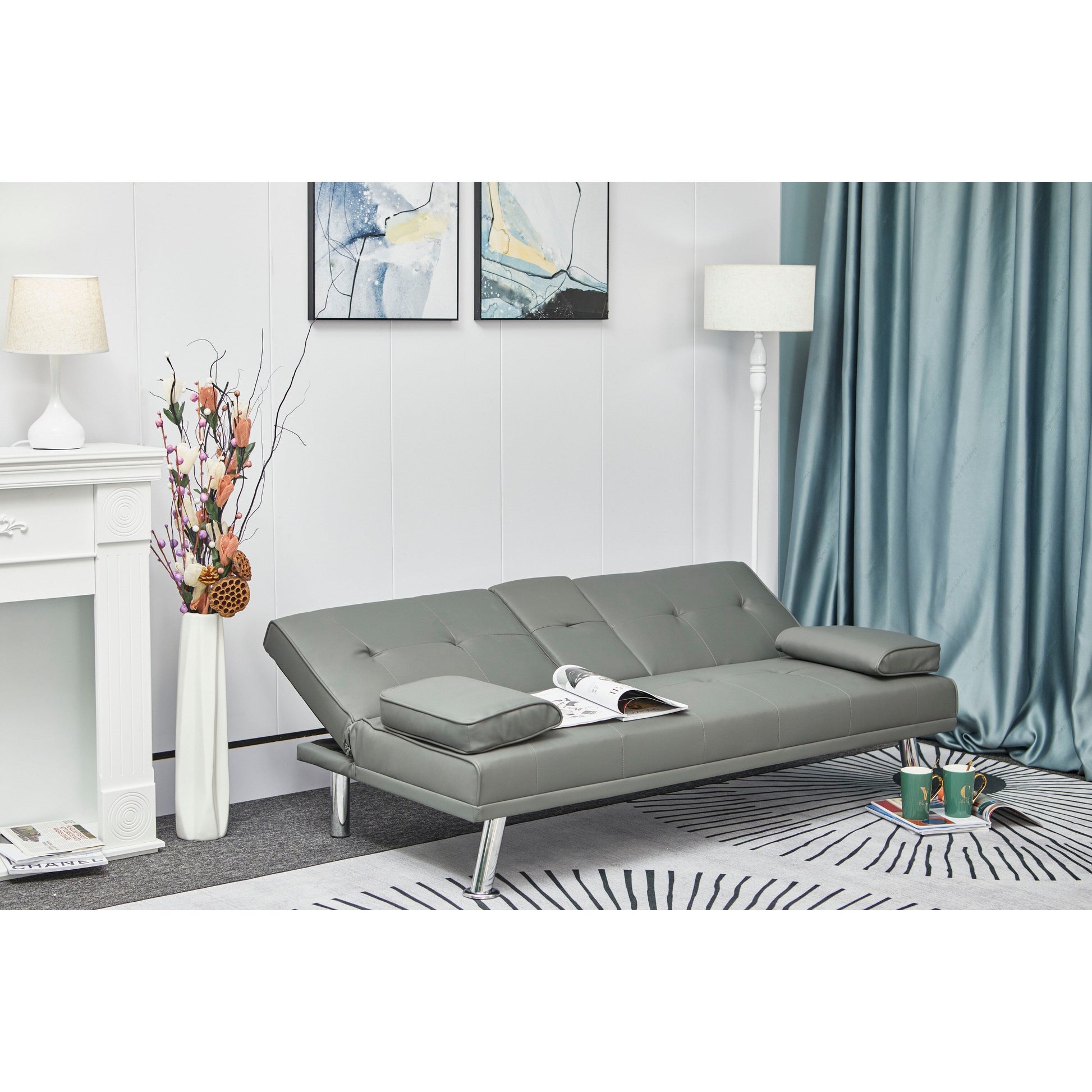 Canapé-lit causeuse en similicuir gris avec porte-gobelet