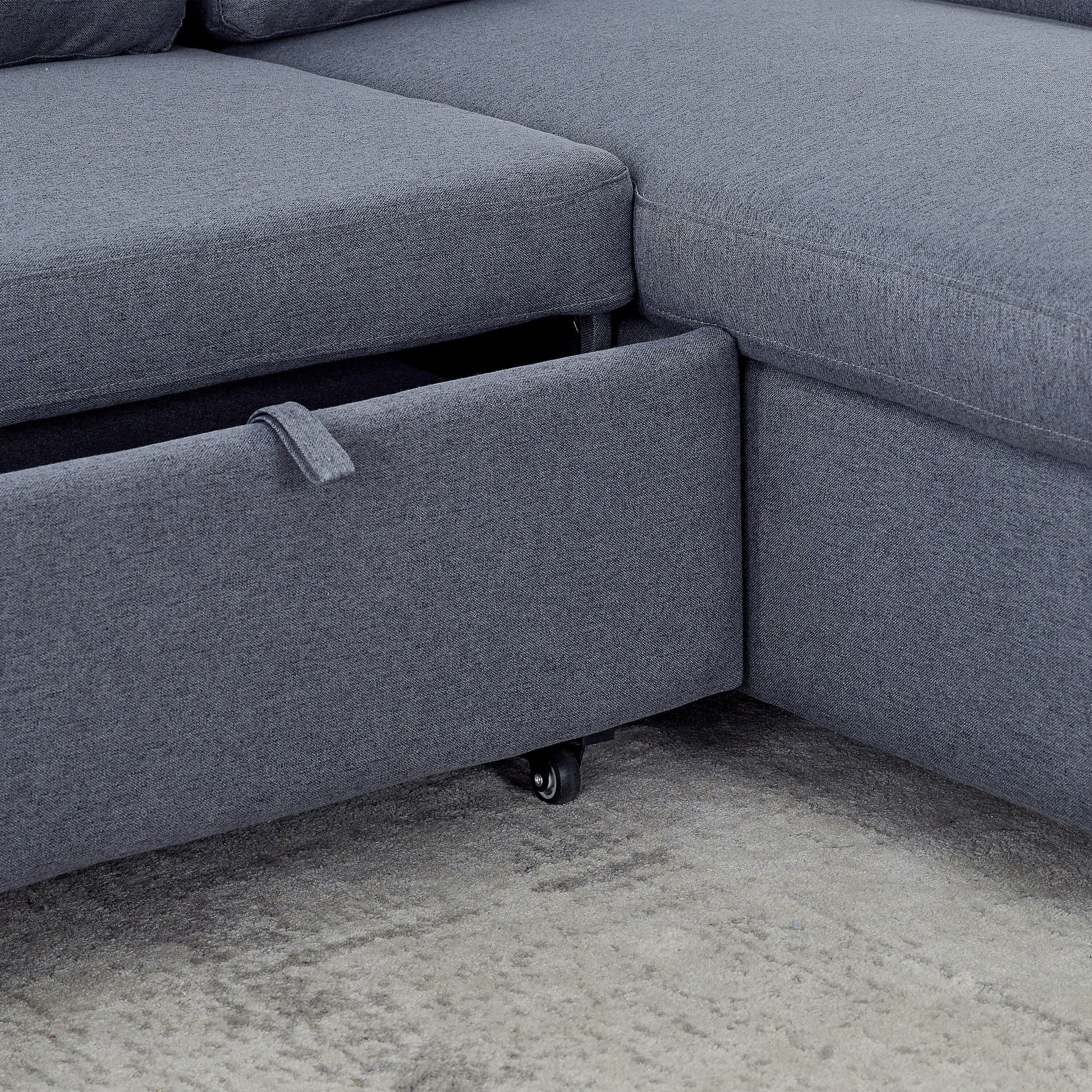 - Canapé-lit polyvalent : Ce canapé en L, doté de poignées portables et de 4 poulies en bas, se transforme facilement en canapé-lit convertible, offrant un espace de couchage supplémentaire pour les invités qui passent la nuit. Il vous permet également de vous allonger confortablement et de profiter d'une ambiance décontractée pour une soirée cinéma.